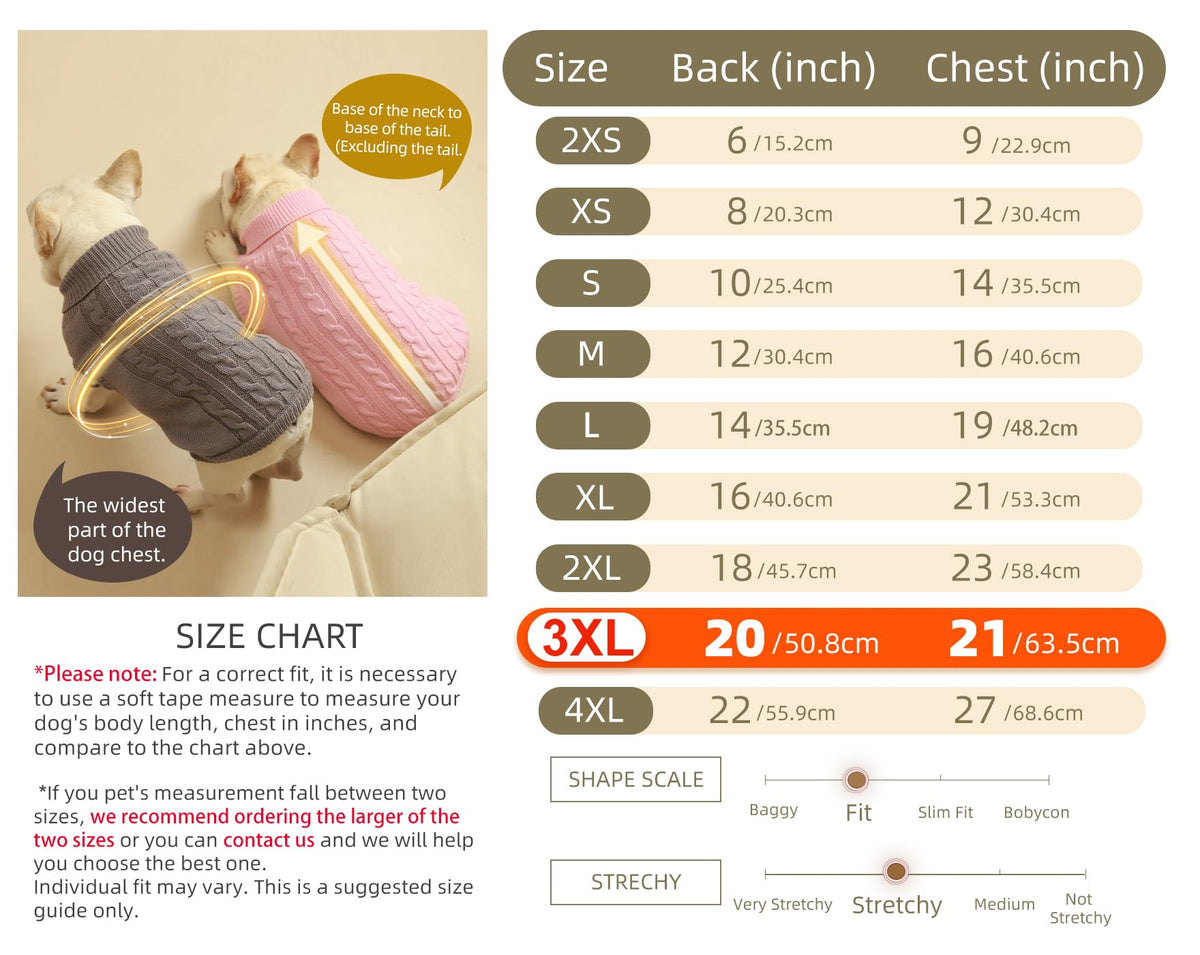 FLUFFY FEELING: This knit coat is doggy friendly with turtleneck pullover design that can fully wrap your pet's neck chest and belly snugly