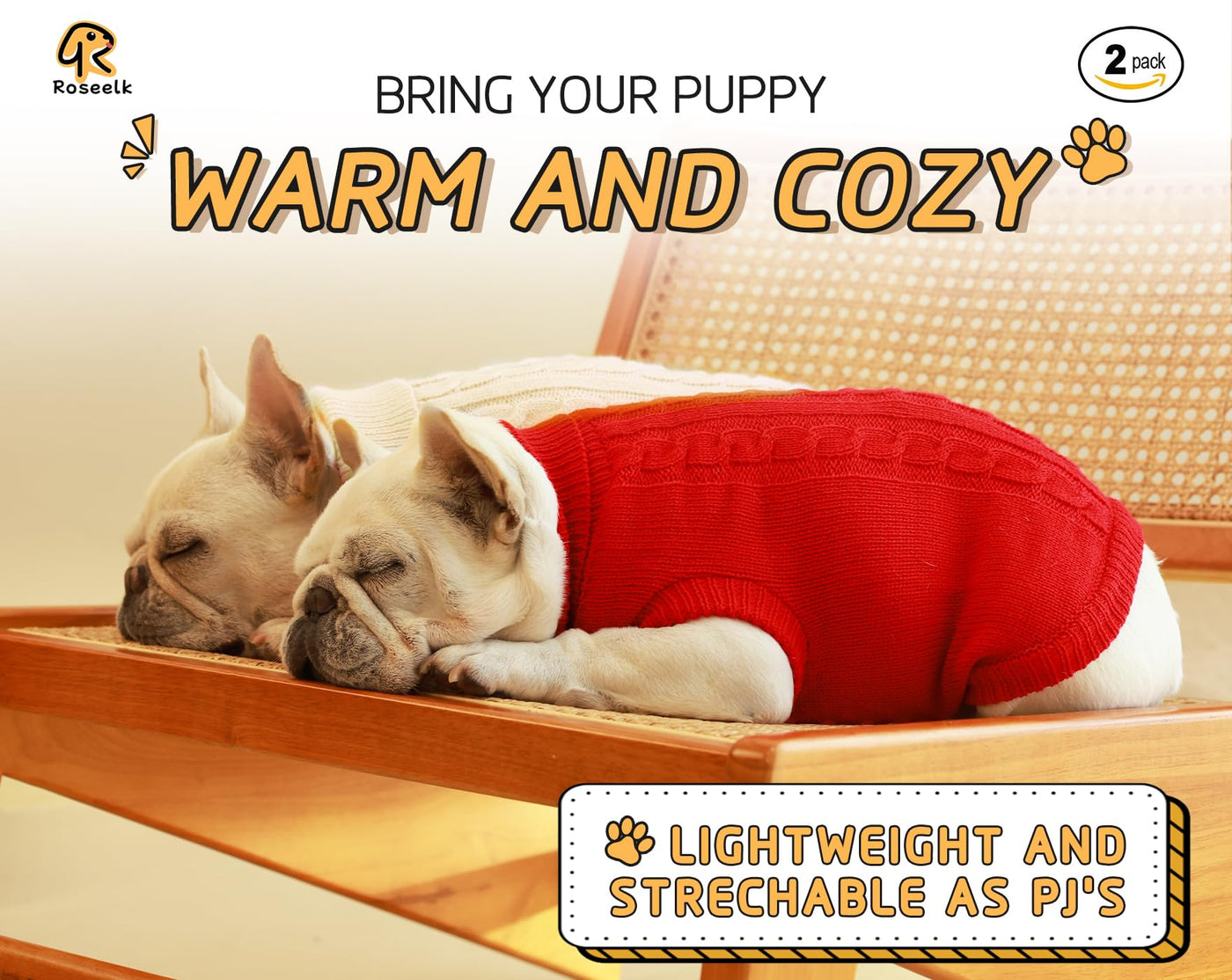 Roseelk 2 Pack Dog Sweaters For Small Dogs - Puppy Medium Warm Clothes In Winter, Turtleneck Pullover Design For Boy Girl Pet, Doggie, Cat, Kitten Chihuahua Bulldog Pug Beagles (S, Red, Beige)