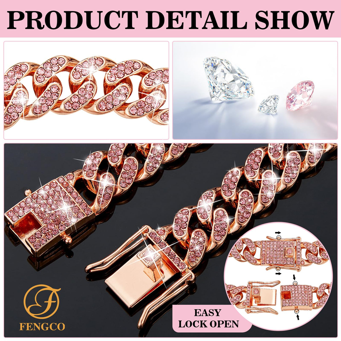 Rosegold Dog Chain Collar Diamond Cuban Link Dog Collar 13Mm Wide Dog Necklace Metal Cat Chain Pet Crystal Collar Jewelry Access