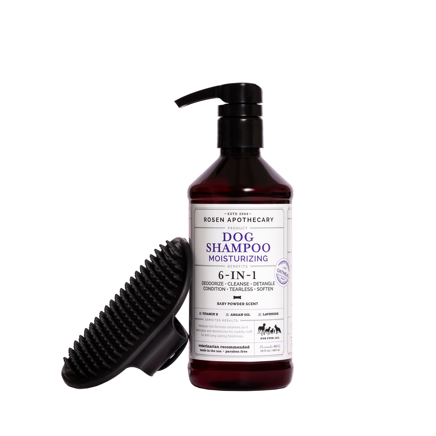 Rosen Apothecary 6-In-1 Moisturizing Dog Shampoo With Brush, Made With Naturally Derived Ingredients To Cleanse, Soothe, Deodori