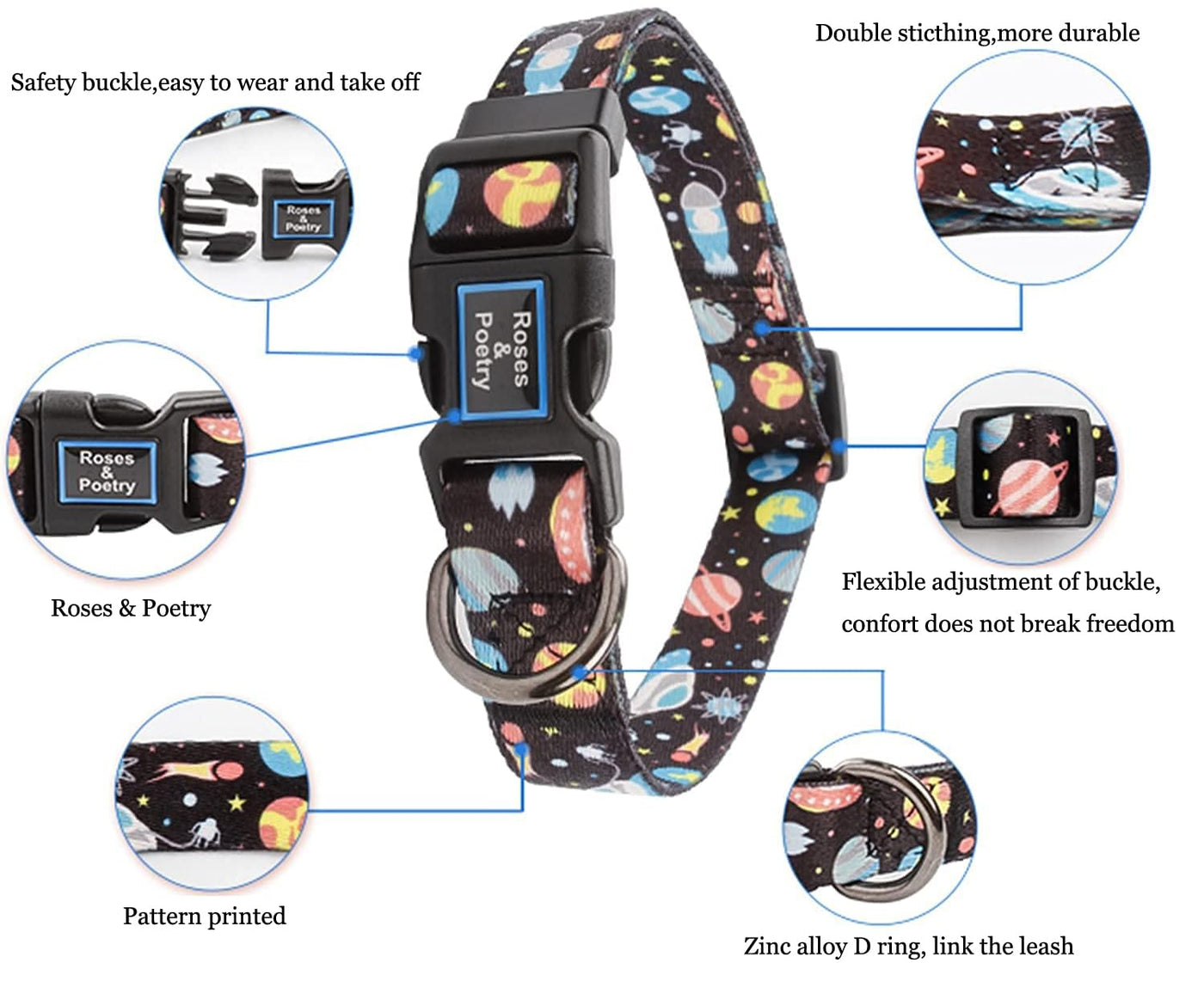 Roses&Poetry Cute Pattern Dog Collar,Soft Adjustable Pet Collar For Xs Small Medium Large Dogs Girl Boy Puppy Walking Running Training Features: 1.Cute Pattern:Many Patterns Dog Collar For Male Female Dogs. Star,Checkered,Stripe,Bee,Pinkdaisy,Pinkstrawberry,Purpleflower. 2.Excellent Material: Made Of High Density Polyester,Lightweight, Durable And Flexible Collar. 3.Convenient & Easy To Use: Quick-Release Premium Abs Made Buckle And Mental D Ring For Leash And Tag Attaching. Size Chart:4 Sizes For Choice! ?Xsmall:Width 0.6'', Adjustable Length 7.5''-11'',Weight: 4.4-11Lb (1.9-5Kg) ?Small:Width 0.6'', Adjustable Length 9.8''-15.7'',Weight To 37Lb (12Kg) ?Medium:Width 0.8'', Adjustable Length 12.9''-21.6'',Weight To 70Lb(31Kg) ?Large:Width 1'', Adjustable Length 15.7''-25.6'',Weight To 90Lb (40Kg) Ps:Kindly Check The Suitable Size For Your Lovely Pets. Package Included: 1 X Dog Collar