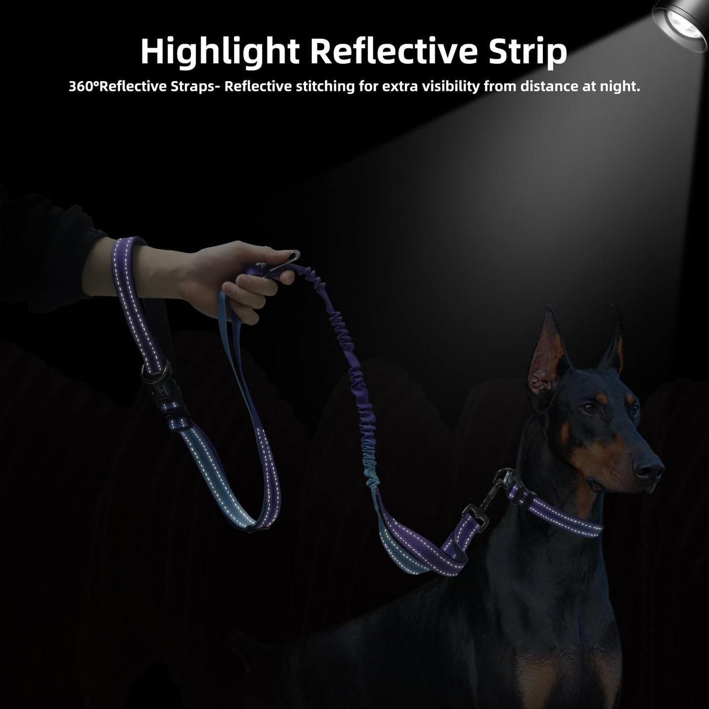 Q: How does the bungee feature enhance the leash's functionality?A: The bungee feature provides shock absorption, giving your dog extra leeway during walks and reducing the strain on both you and your pet, making it easier to control sudden movements.