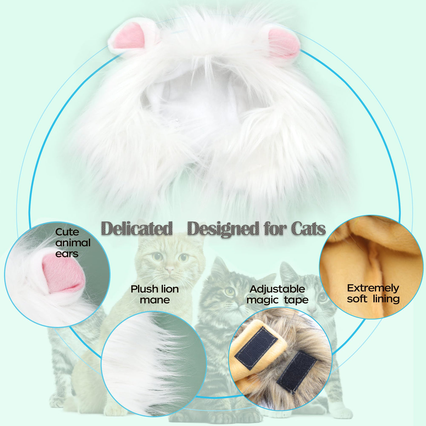 Rosylife Lion Mane Wig For Cat Costume Pet Adjustable Washable Comfortable Fancy Lion Hair Cat Clothes Dress For Halloween Christmas Easter Festival Party Activity (Medium, White)
