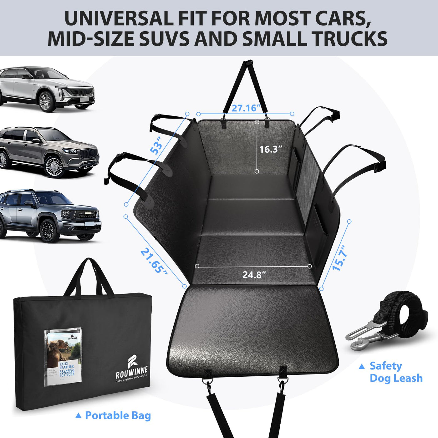 Rouwinne Back Seat Extender For Dogs-Upgraded Pu Leather, Hard Bottom Dog Car Seat Cover For Back Seat, Anti-Scratch Backseat Extender For Dogs, Waterproof Dog Hammock For Car, Suv, 400Lbs
