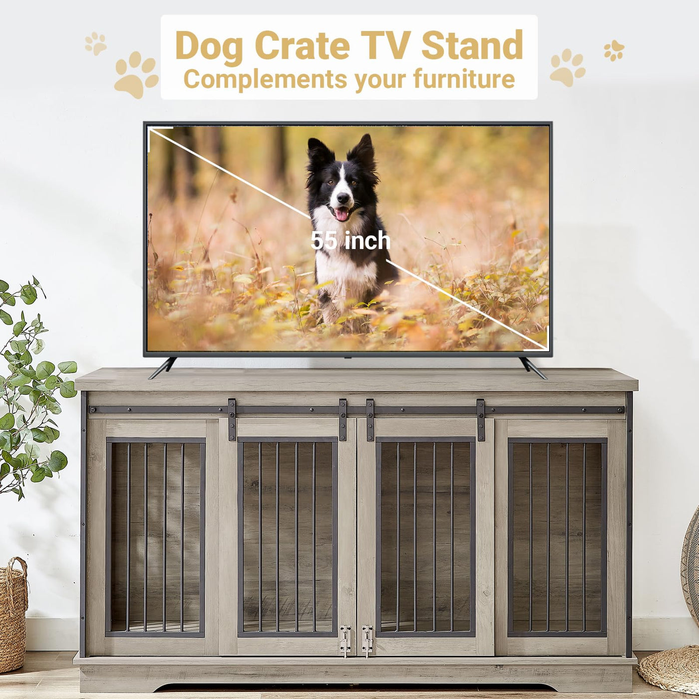 Rovibek 61 Double Dog Crate Furniture for 2 Dogs, Large Double Dog Kennel Furniture TV Stand, Furniture Style Dog Crates End Tab