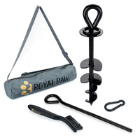 Q: Can the stake be used on different types of soil?A: Yes, the ROYAL-PAW Dog Tie Out Stake works effectively on sandy, clayey, and even rocky soils. For stubborn or hard ground, a metal installation tool is included to assist with the installation process.