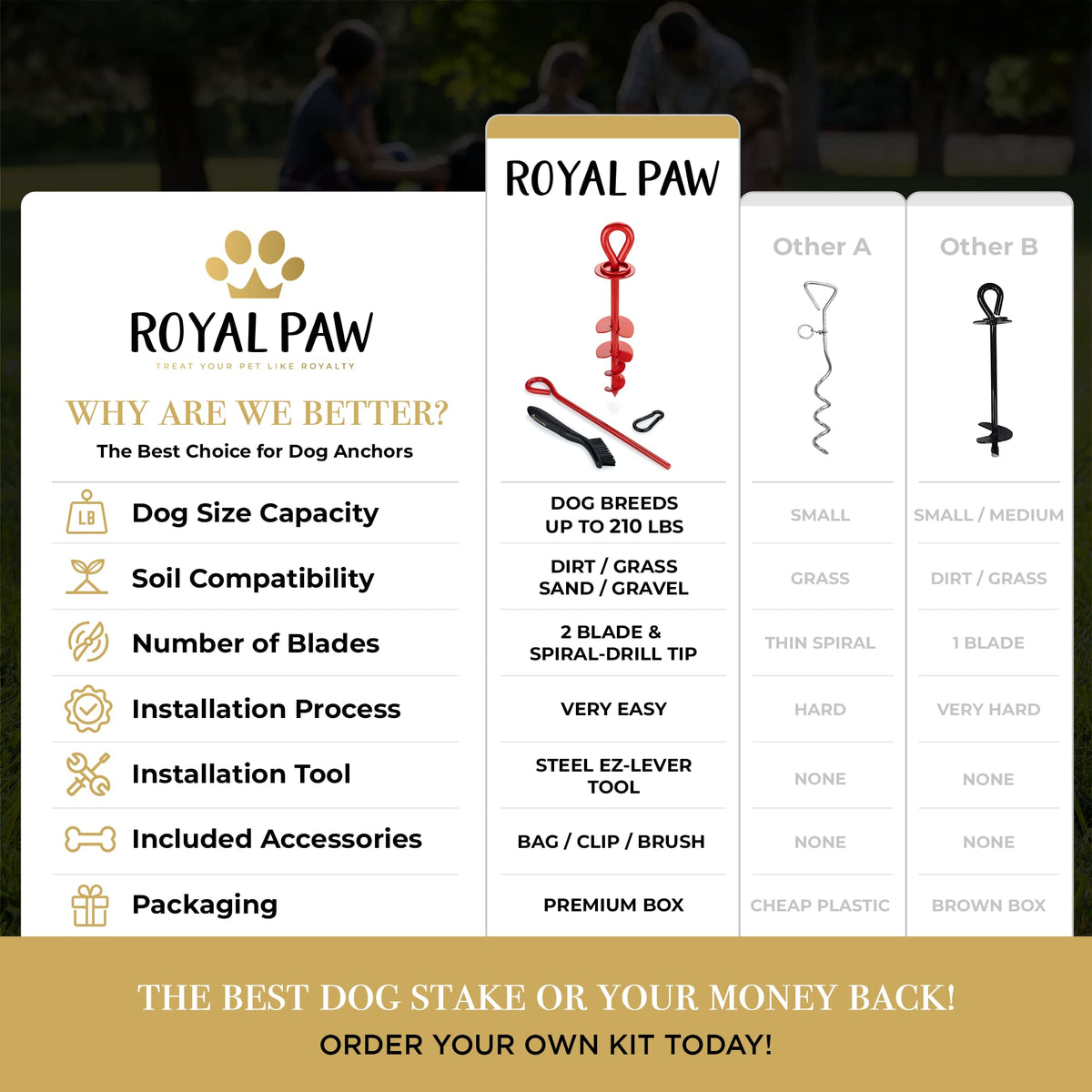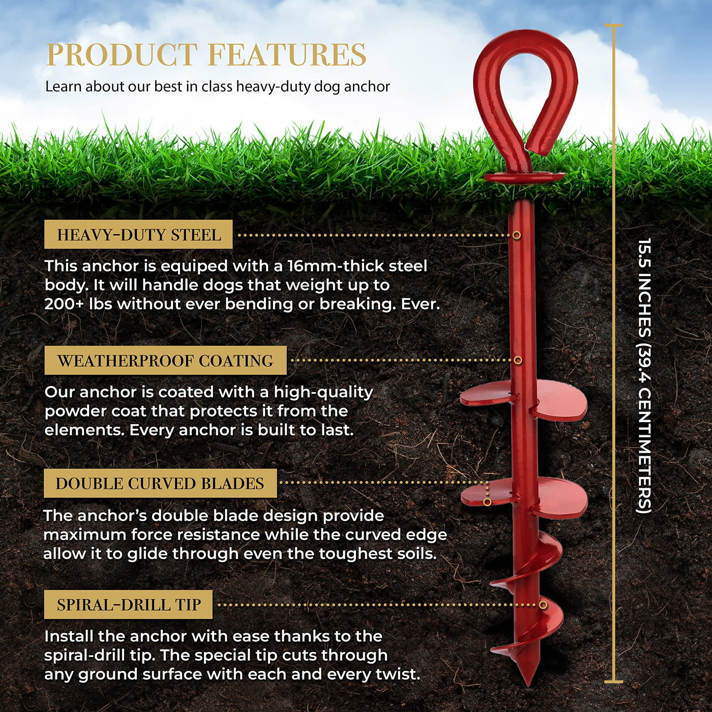 Royal Paw Dog Tie Out Stake - Heavy Duty Dog Stake For Large Dogs Up To 210 Lbs, Dog Stakes For Outside, Dog Anchor, And Dog Gadget | Use Any Dog Tie Out Cable Or Dog Yard Leash (R1-Crimson Red)