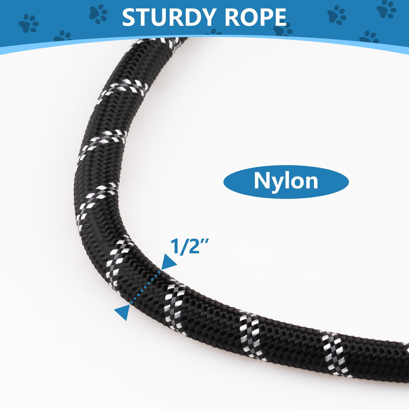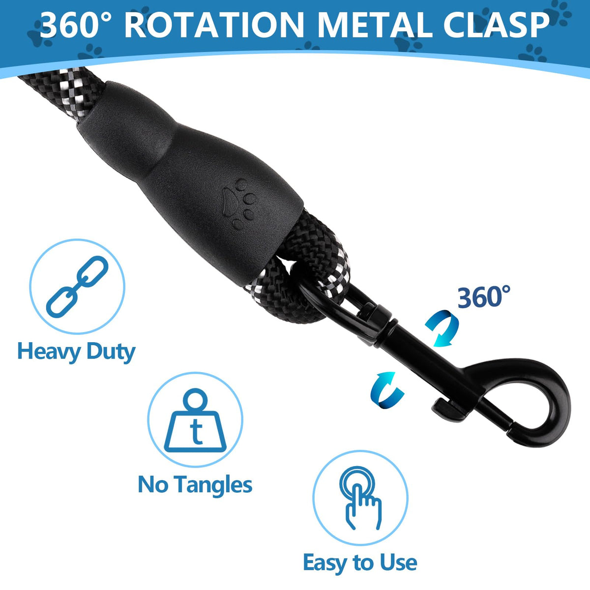 This Dog Leash Is Designed For Heavy-Duty Construction With A Sturdy 1/2-Inch Diameter Climbing Rope And Quality Clip Hooks For Enhanced Security. It Features Comfortable Padded Handles Made Of Neoprene Or Eva Foam For A Grip That Protects Hands From Rope Burn. The Reflective Design With Woven Threads Increases Visibility And Safety During Nighttime Walks. The 360-Degree Rotating Clamp Made Of Nickel-Plated Zinc Alloy Prevents Tangling And Keeps Dogs Secure. Suitable As A Standard 5-Foot Long, 1/2-Inch Diameter Leash For Basic Training And Daily Walks For Small To Medium-Sized Dogs.