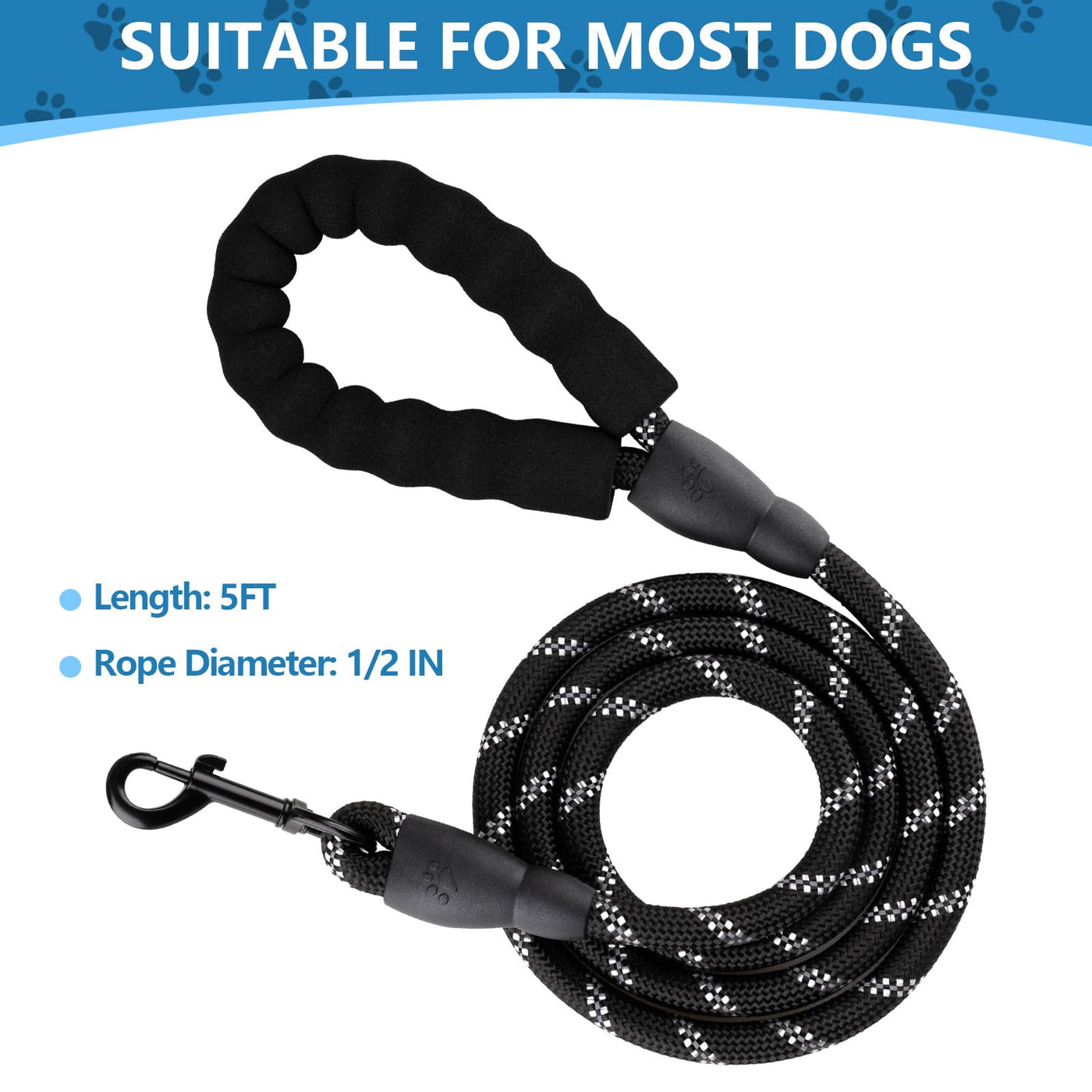 Rpeconu 5Ft Dog Leash With Soft Padded Handle, Pet Highly Reflective Leash For Small Medium Large Sized Dogs, 1/2 Inch, Black