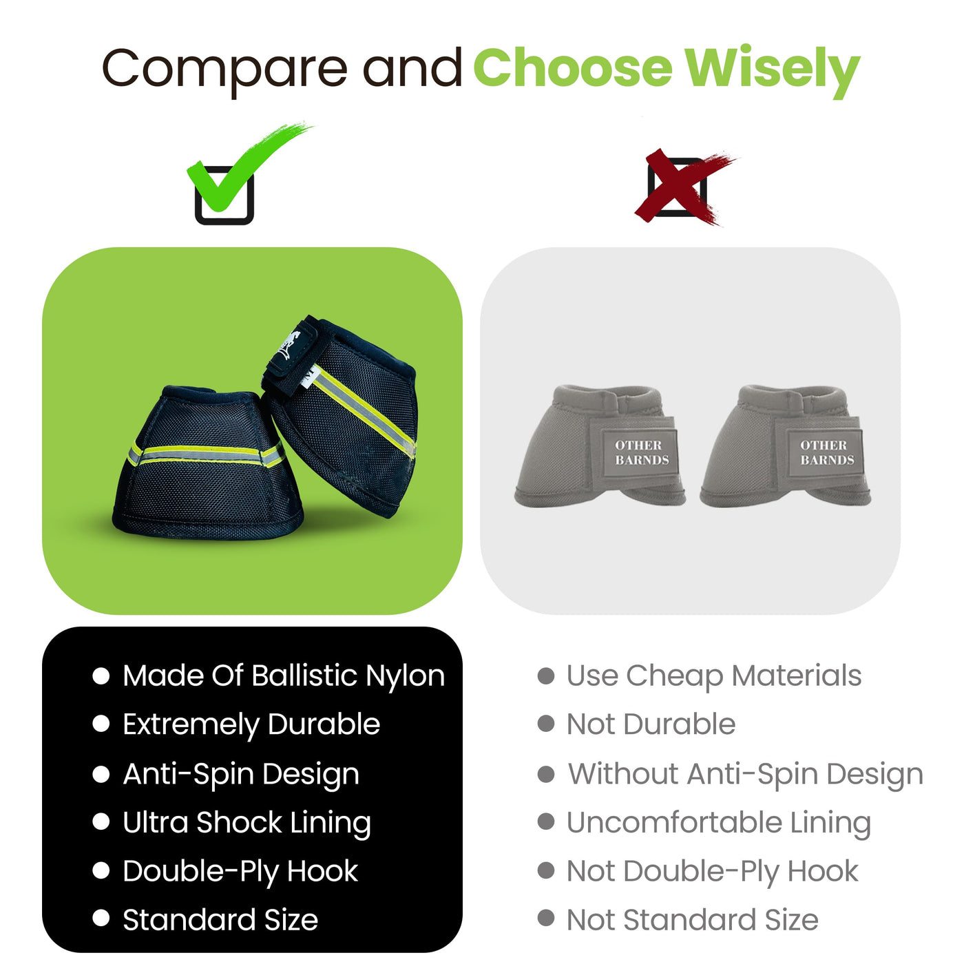 Rs Premium Horses Horse Bell Boots (Gold Line Reflective, Large)