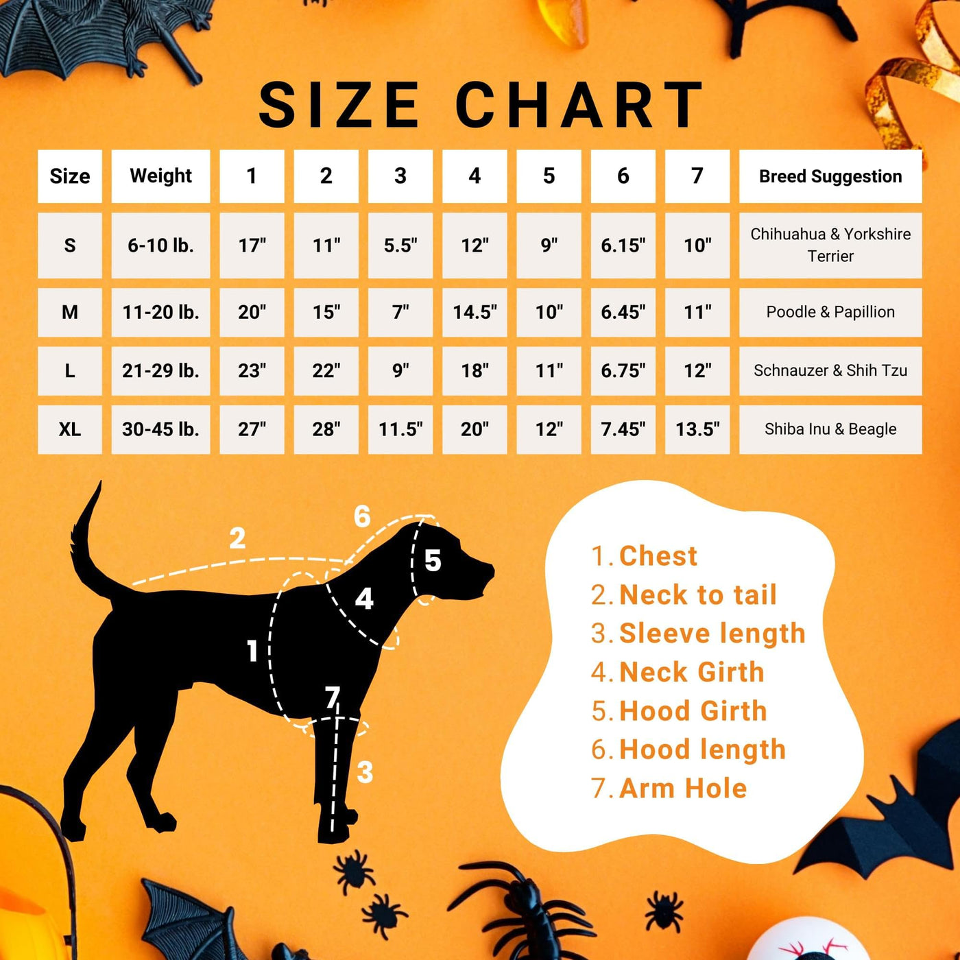 Full body hooded jumpsuit for pets IMPORTANT PLEASE READ recent reviews and Q&As before purchase to determine the best size for your pet NOT ALL cOSTUMES WILL FIT ALL PETS or breeds without adjustment