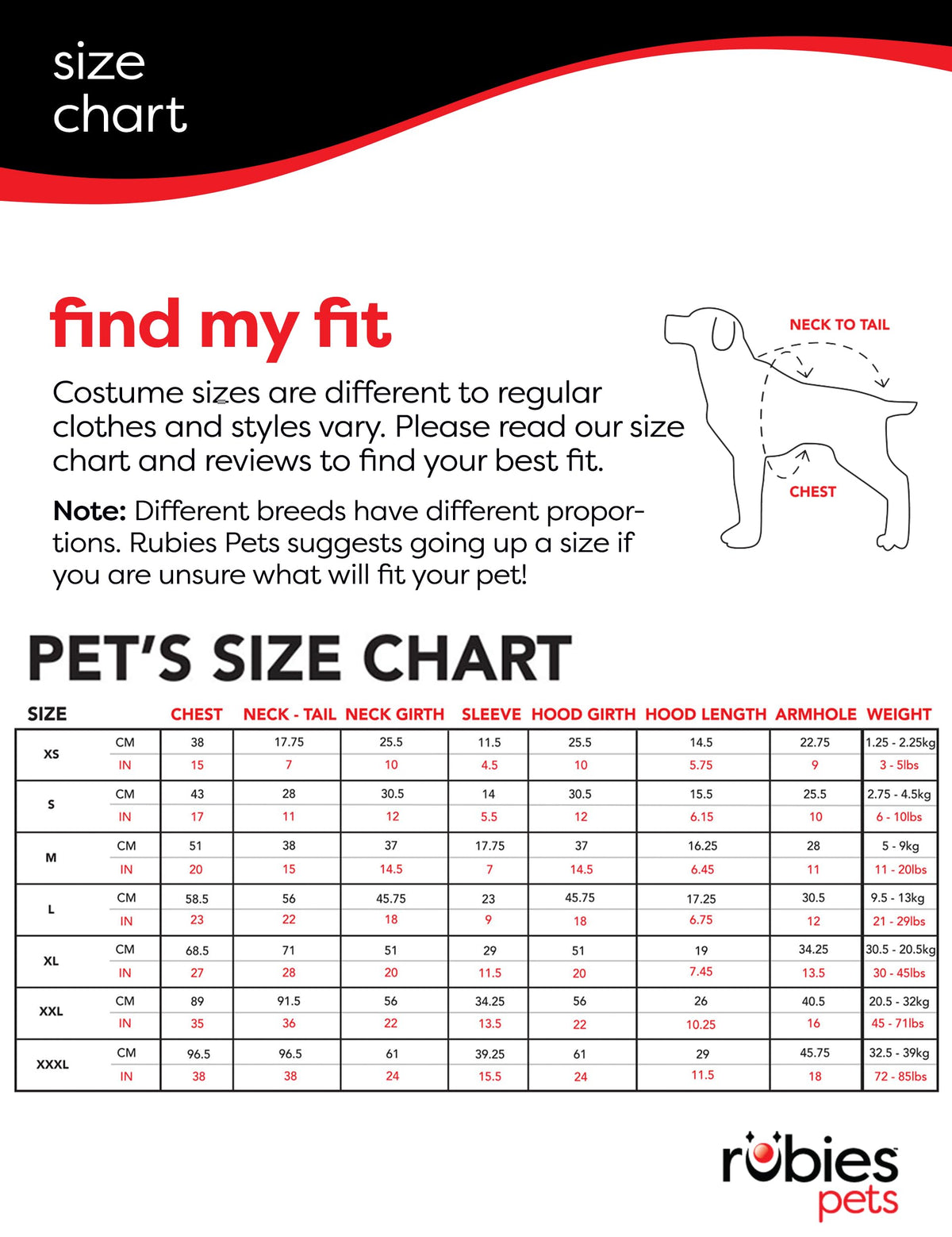 Q: What sizes are available for the Rubie's Willy Wonka Oompa Loompa Pet Costume?A: The Rubie's Willy Wonka Oompa Loompa Pet Costume is available in a medium size. It's important to refer to the Rubie's Pet Size Chart and watch the sizing instruction video to ensure the best fit for your pet.