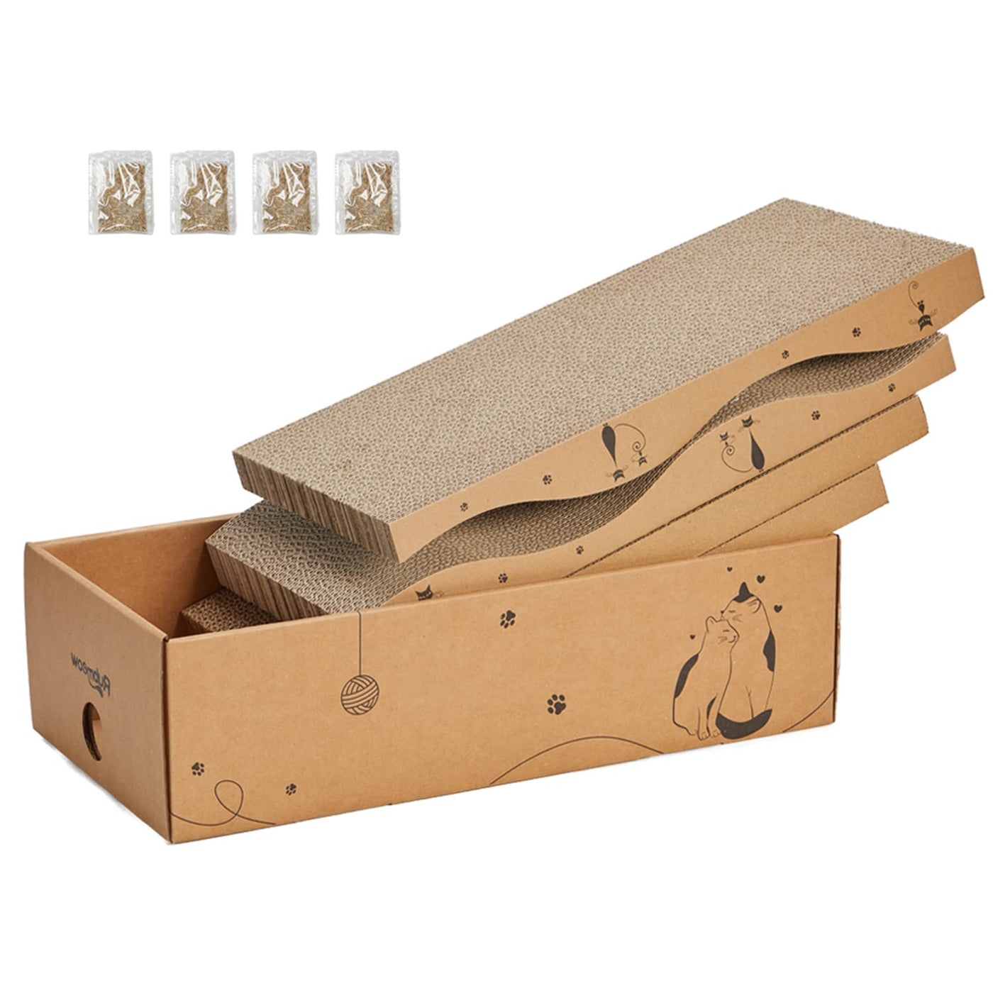 Rubmeow Cardboard Cat Scratcher Pad Scratch Box,4Pcs Scratching Pads For Indoor Cats,Reversible Durable With Catnip