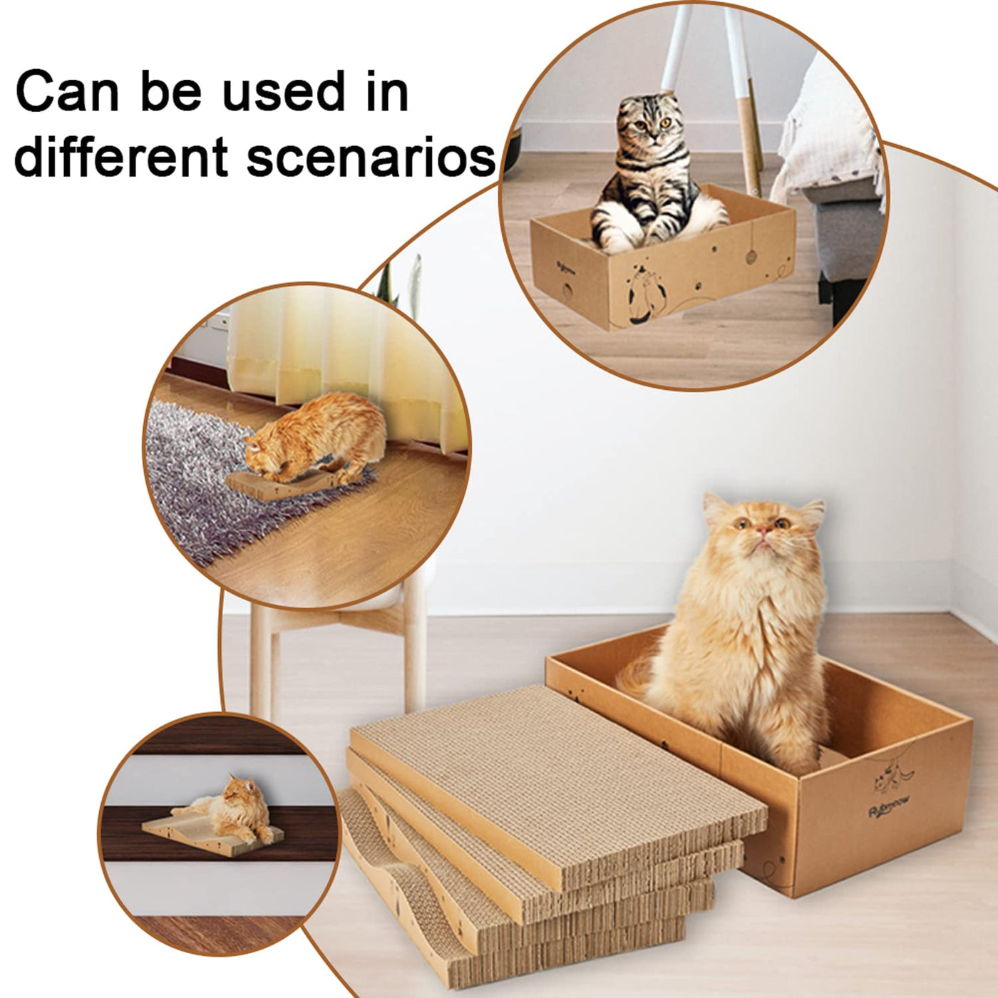 Cat Scratch Pad With Box 4 in 1Cardboard Cat Scratcher for Indoor Cats Reversible Durable With Catnip