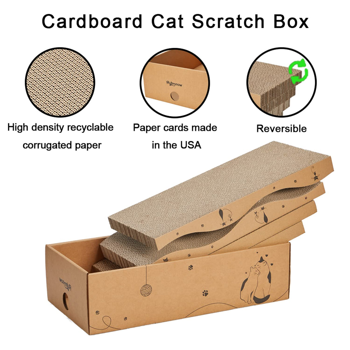 High Quality and Safety: The paper card made in USA is used in the outer scratch box.The scratching board is made of 100% recyclable corrugated paper.Friendly to cats with no adverse effects.