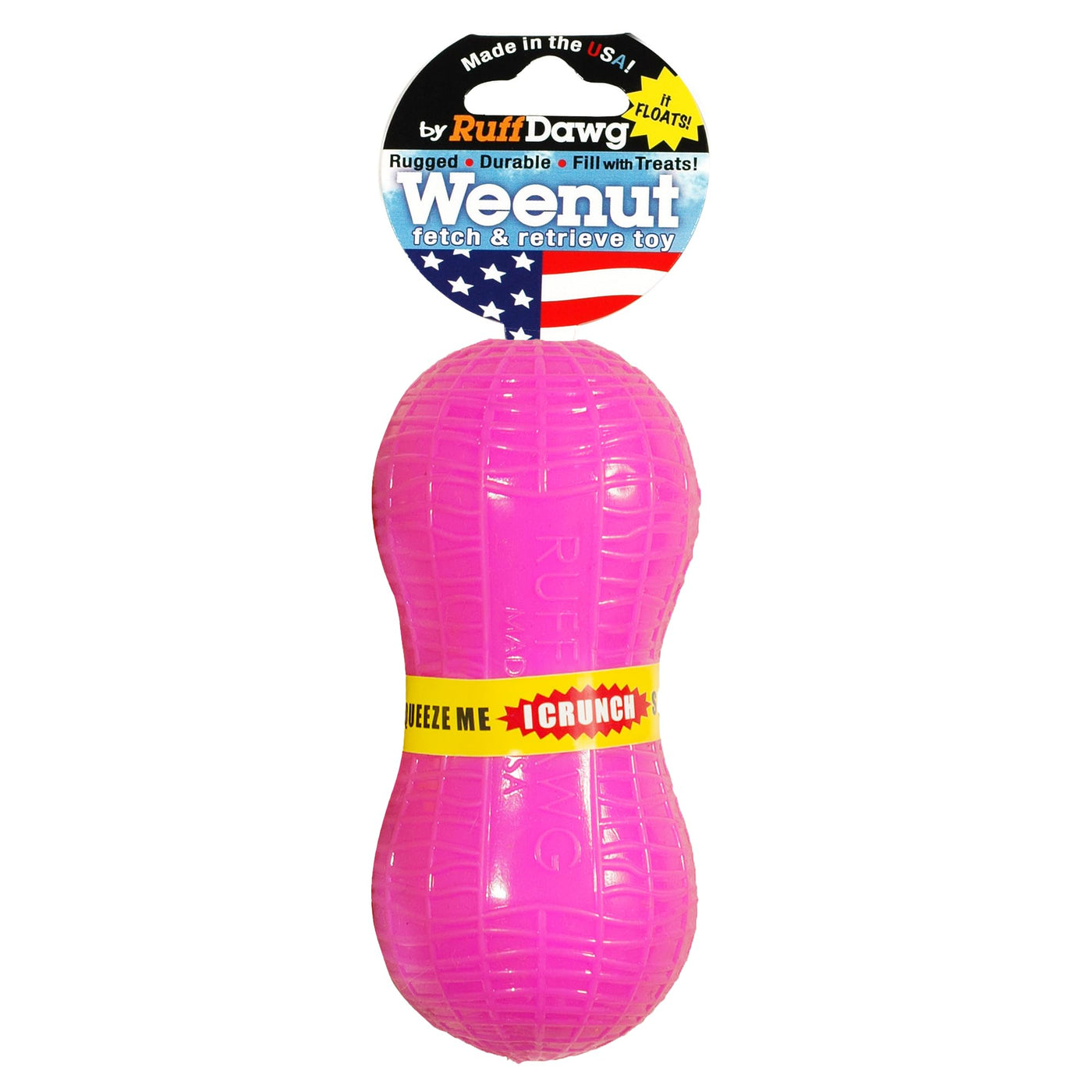 The Ruff Dawg Wee-Nut Crunch Is The Ultimate Durable And Engaging Rubber Dog Toy, Designed To Provide Endless Fun For Your Furry Friend Through Chewing, Fetching, And Interactive Play. Crafted From High-Quality, Pet-Safe Rubber, This Toy Is Built To Withstand Even The Toughest Chewers While Remaining Gentle On Teeth And Gums, Making It A Great Choice For Dogs That Love To Chew. Its Unique Crunchy Sound Adds An Exciting Sensory Experience, Keeping Dogs Entertained And Satisfying Their Natural Chewing Instincts. Whether Your Pup Enjoys A Game Of Fetch Or Prefers Independent Play, The Wee-Nut Crunch Is Designed For Easy Gripping, Allowing Dogs To Carry, Toss, And Chew With Ease. Perfect For Both Indoor And Outdoor Adventures, This Toy Floats In Water, Making It Ideal For Fun At The Beach, Pool, Or Lake. Plus, Its Bright Neon Colors Ensure High Visibility, So Youll Never Lose Sight Of It During Playtime. Proudly Made In The Usa, This Toy Reflects Ruff Dawgs Commitment To Safety And Quality, Ensuring A Non-Toxic And Long-Lasting Play Experience For Dogs Of All Sizes. Whether You'Re Looking To Keep Your Dog Engaged, Relieve Boredom, Or Promote Healthy Chewing Habits, The Ruff Dawg Wee-Nut Crunch Delivers The Perfect Combination Of Durability, Excitement, And Interactive Fun. Give Your Pup A High-Quality Toy Theyll Love With The Ruff Dawg Wee-Nut Crunch, Designed To Provide Safe And Stimulating Play Every Day!
