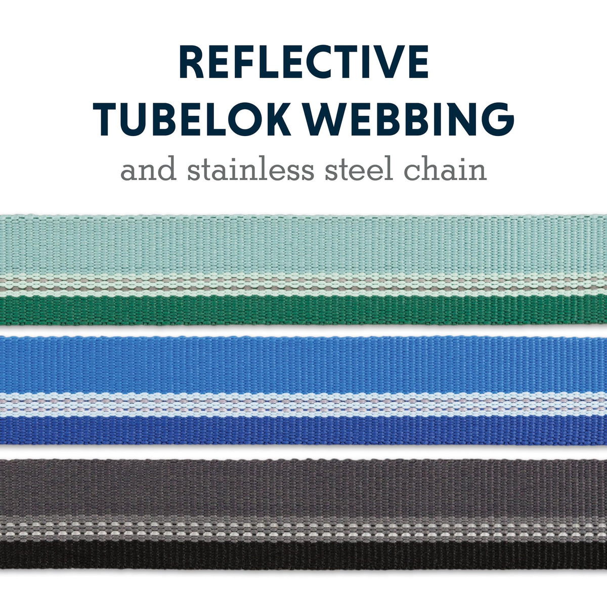 The Chain Reaction Collar Is A Great Solution For Dogs Who Slip Out Of Traditional Collars. Its A Limited-Cinch Martingale-Style Collar That Combines Ruffwear-Designed Tubelok Webbing With Integrated Reflectivity And A Short Section Of Stainless Steel Chain. This Collar Also Features A V-Ring Attachment So You Can Use It As A Standard Collar, Separate Id Tag Attachment Point, And Silicone Tag Silencer. Pair With Our Front Range Leash And Harness For A Matching Set.