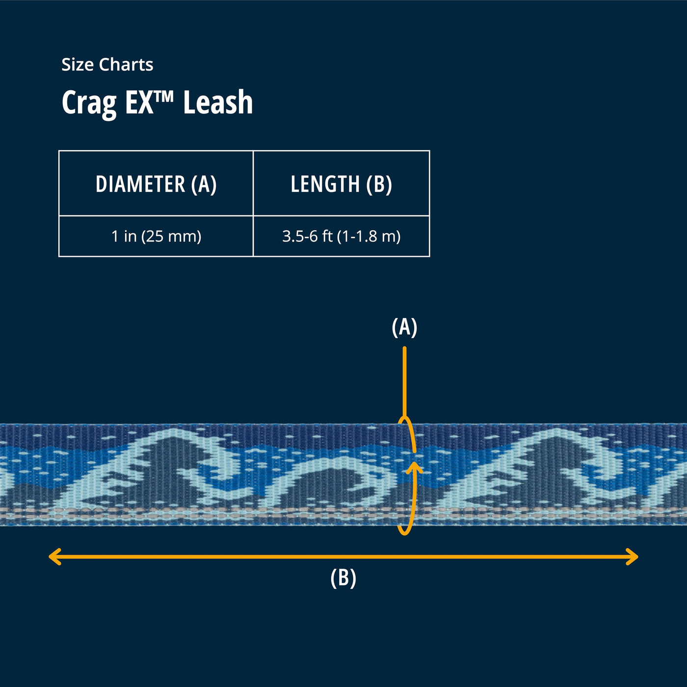 The Crag Ex Leash Is An Adjustable Dog Leash That Can Be Used Hand-Held Or Hands-Free. Fully Extend To 6 Feet (1.8 M) For Relaxed Walks Or More Room While Running And Hiking, Or Shorten To 3.5 Feet (1 M) When Looking To Keep Your Pup Close. The Metal Slider Makes It Easy To Adjust Length On The Go. Side-Release Buckle On The Handle Is Easy To Use And Reinforced With An Aluminum Uniloop For Exceptional Strength, Adjusting Easily When Wearing Around The Waist. Ruffwears Unique Talon Clip Offers A Strong And Secure Connection To Your Dog. It Includes Ruffwear'S Signature Leash Features Like A Padded Handle, An Accessory Loop For Pick-Up Bags Or Small Attachable Leash Accessories, And Strong Webbing That Holds Its Color So It Can Be Your Favorite Leash For Years To Come. Integrated Reflectivity Helps Boost Visibility For Dogs And Humans Getting Out In Low-Light Conditions. Check Out The Matching Crag Collar To Complete The Kit. Length: 3.5-6 Ft (1-1.8 M), Width: 1 In (25 Mm).