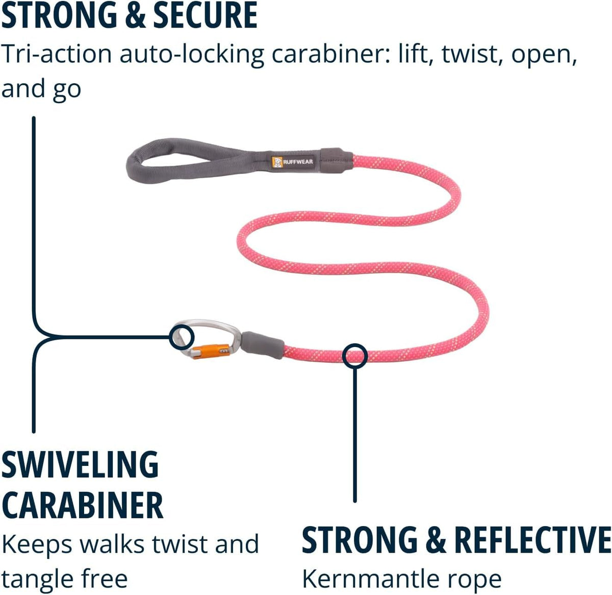 Ruffwear, Knot-A-Leash Dog Leash, Reflective Rope Lead With Carabiner, Pink, Small