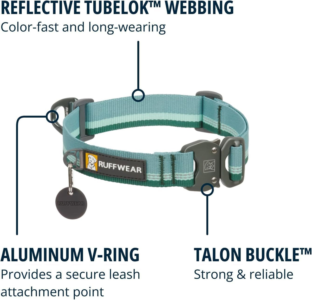 Ruffwear, Top Rope Dog Collar, Reflective Metal Buckle Dog Collar for Everyday Use, River Rock Green, 20-26