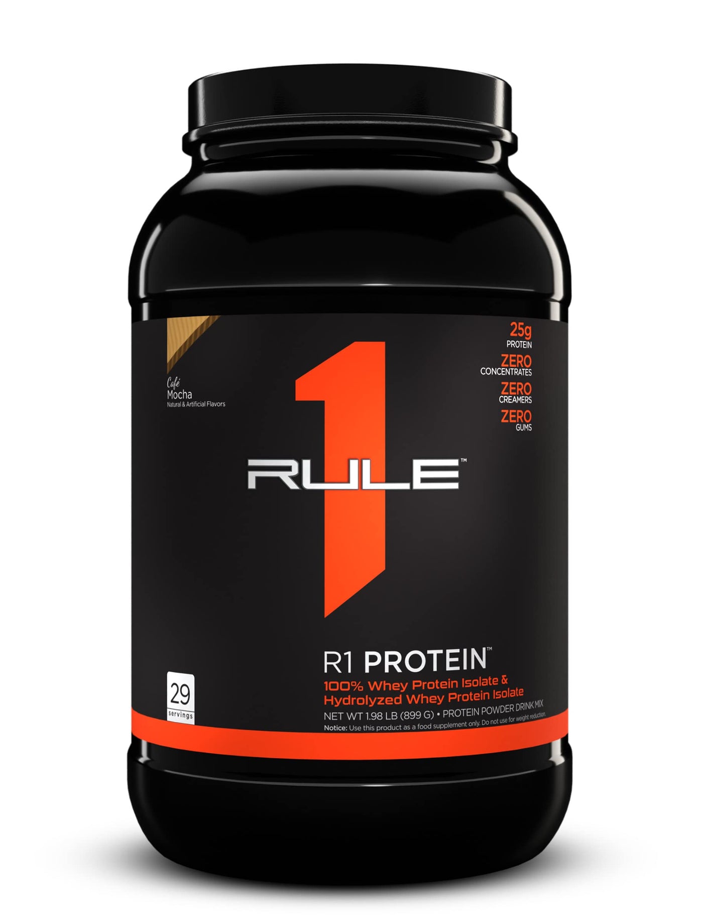 Rule One Proteins, R1 Protein - cafe Mocha, 25g Fast-Acting, Super-Pure 100 Isolate and Hydrolysate Protein Powder with 6g BcAAs