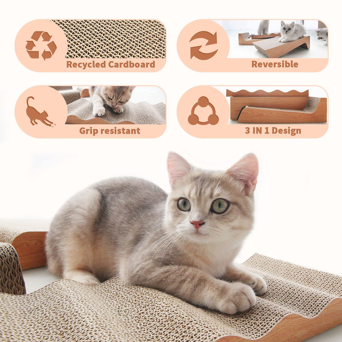 Rumuuke Cat Scratch Pad- 3 In 1 Corrugated Cardboard Cat Scratcher For Indoor Cats, Professional Cat Scratching Board For Adult Cats, Catify Cat Scratcher Pads With Catnip
