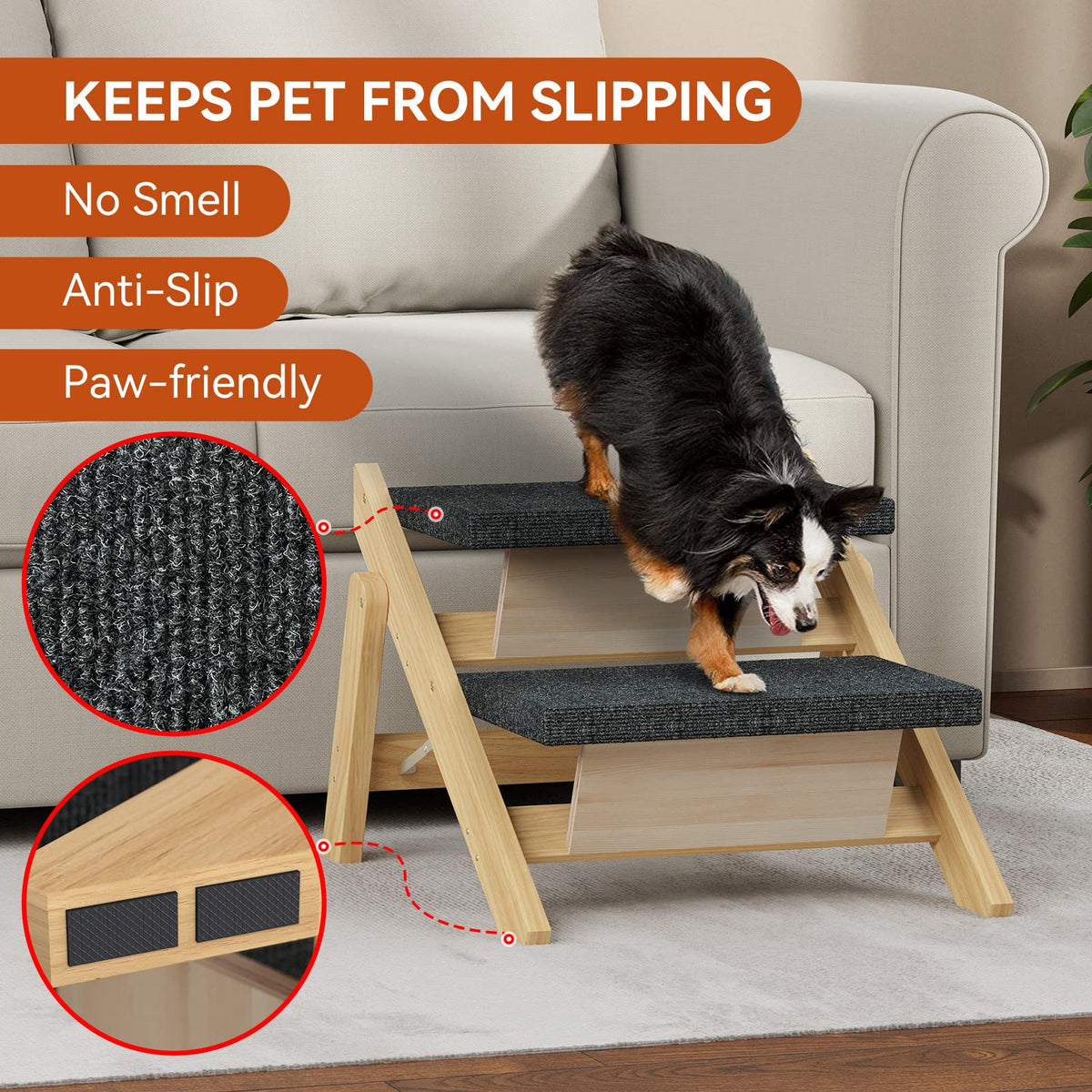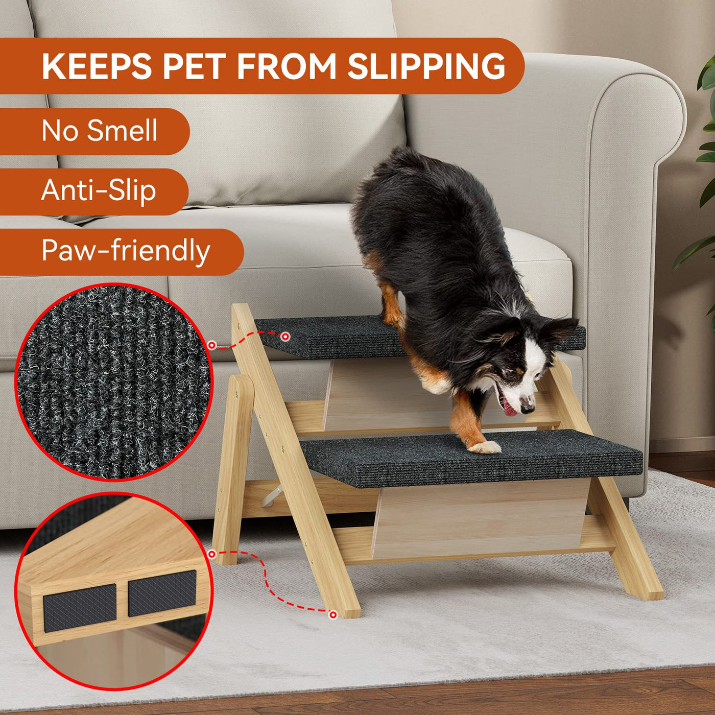 Runlexi Pet Stairs/Steps - Small, Medium, Large Dogs Steps For Beds And Cars Pets Have Some Pretty High Expectations, So Give Them The Height Boost They Demand. Runlexi Pet Stairs Help Your Dog Or Cat Get Up To That Favorite Spot On The Couch Or High Bed. Foldable Design Lets You Store Them Easily, And The Natural Wood Style Complements Any Home D Cor. Runlexi Dog Steps Made With Solid Wood Support Bars Which Makes Them Sturdy And Stable, And Are Portable So You Can Easily Move Them Around. Each Step Has Felt Carpet To Help Paws Get A Grip While Climbing. When You Dont Need Them, The Foldable Design Makes For Easy Storage. Plus, These Stairs Dont Need To Be Assembled, So You Can Start Using Them Right Away.