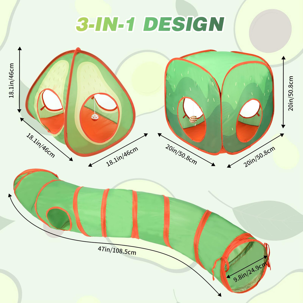 Rypet Cat Tunnel With Two Foldable Cube And Tent Offers Hours Of Fun And Healthy Exercise In Large Play Areas For Your Cats, Puppy, And Bunny. Stimulate Your Pets Playful Nature By Providing Combining Exercise And Entertainment, The Tunnel Toy Can Let Your Cat Stalk, Pounce And Run Indoors Or Outdoors. Why Choose The Rypet Cat Tunnel Toy Set? 1. 3 In 1 Lovely Cat & Fish Pattern Design, One Cat Tunnel And Two Foldable Cube, Tent, The Detachable Design Allows You To Diy Your Own Tunnel. 2. The Cat Tunnel Toy Is Made Of The Durable Polyester With Crackle Paper, Specifically Designed To Attract Your Pets Interest And Pique Your Pets Curiosity. 3. Two Peep Holes On Each Side Provide Opportunities To Pounce, Play, Hunt & Hide. 4. The Movable Ball Hanging In The Hole Can Enhance The Pet'S Curiosity And Natural Instinct. 5. Pops Open In Seconds! Sprung-Steel Collapsible Design Easily Folds Down From 50 Inches To 2 Inches In Seconds! Specifications: Material: Polyester, Crackle Paper, Stainless Steel Wire Suitable For: Cats, Puppies, Rabbits, Small Pets Size: Tunnel : 10 X 50 Inch Cube: 20 X 20 X 20 Inch Tent:20 X 20 X 20 Inch Package Included: 1 X Cat Cube 1 X Cat Tent 1X Cat Tunnel 2 X Hanging Toys