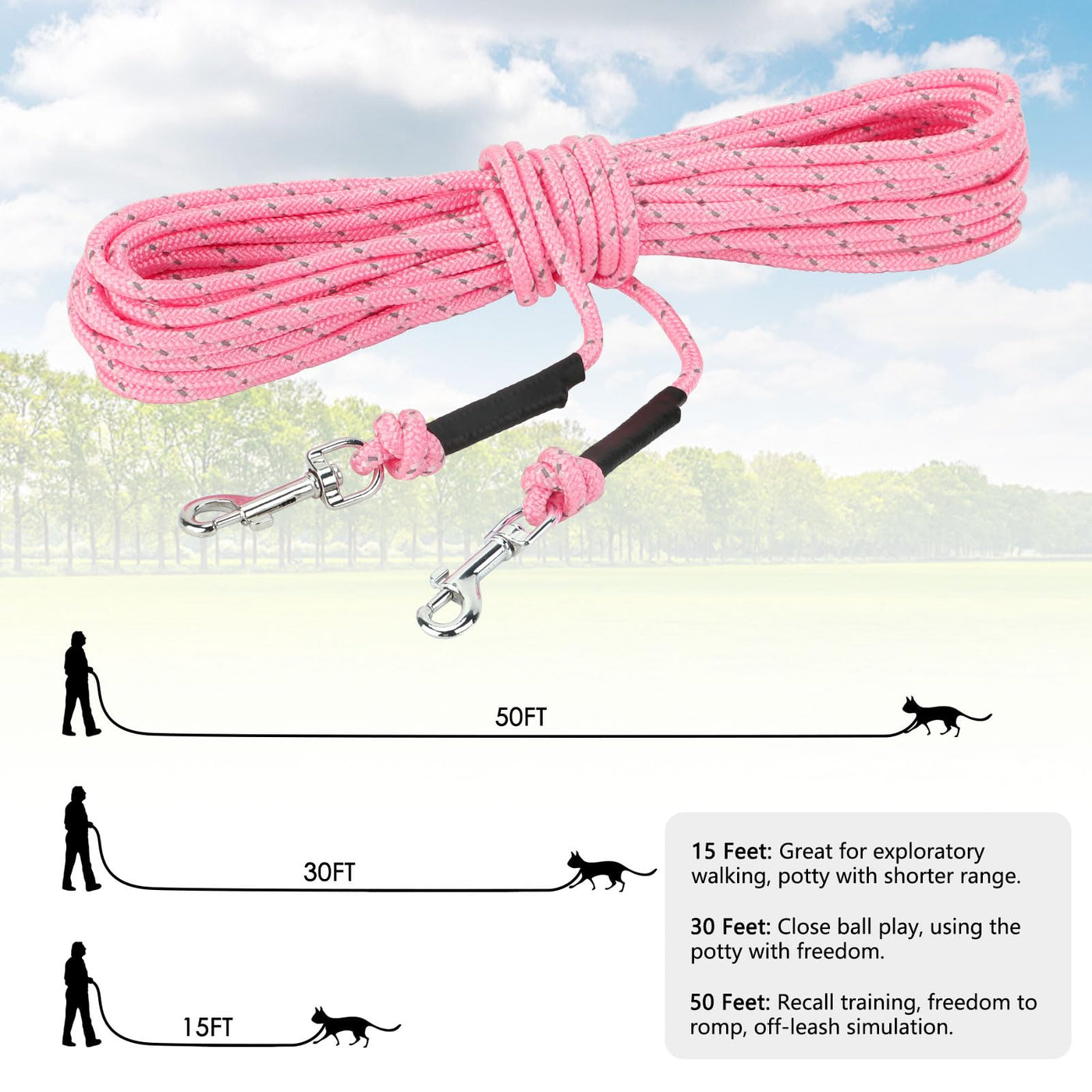 Rypet Reflective Cat Long Leash 15 Ft Escape Proof Walking Leads Yard Long Leashes Durable Safe Personalized Extender Leash Tran