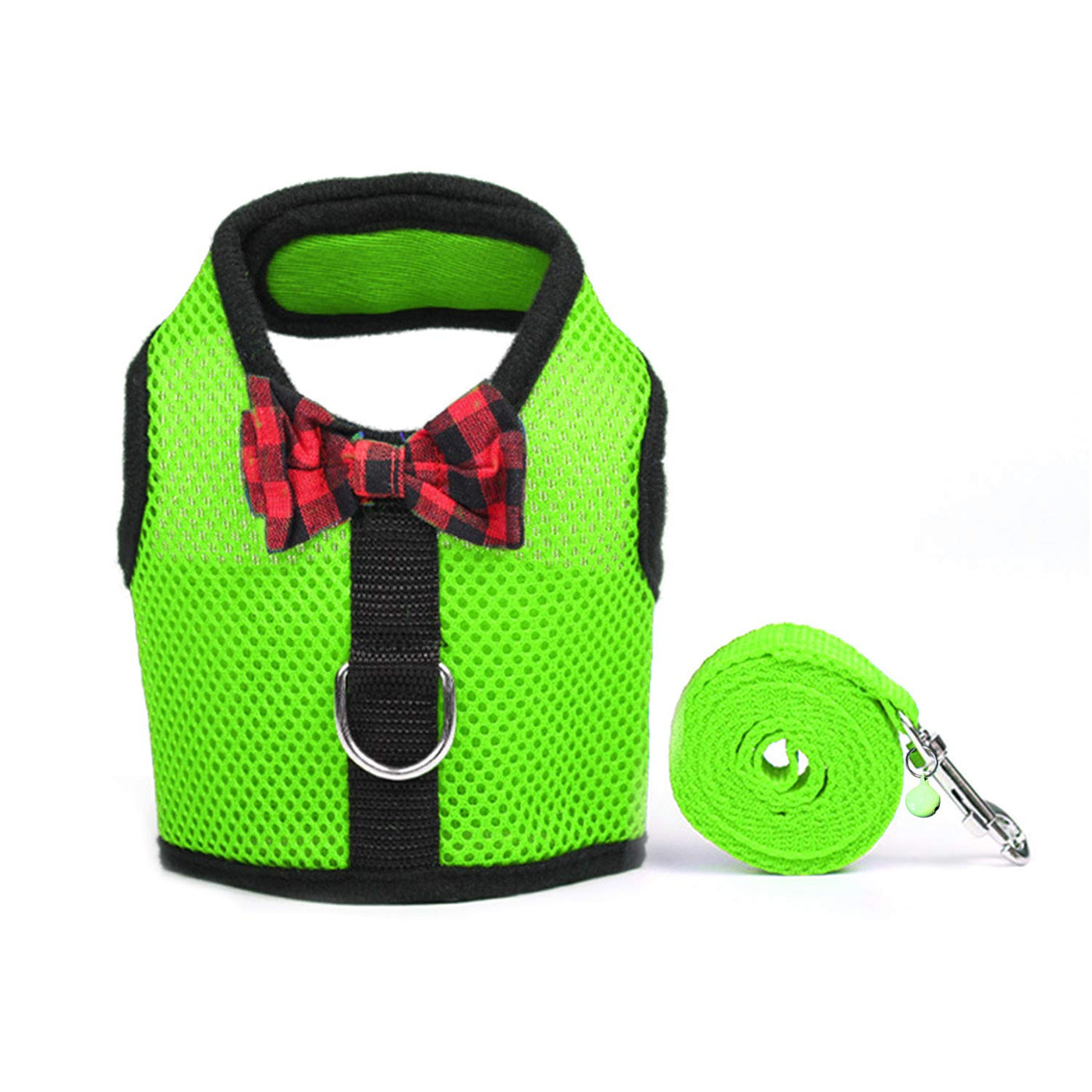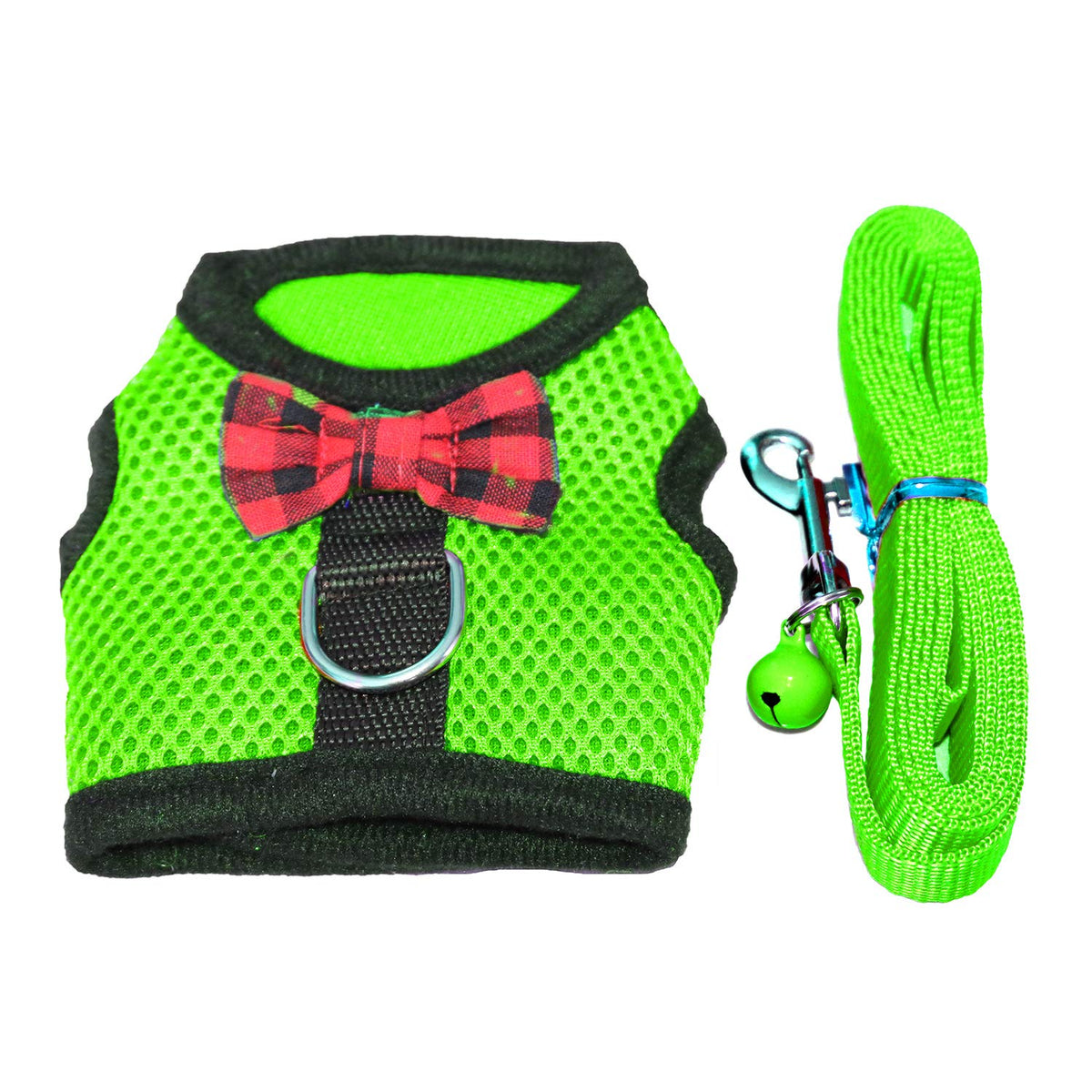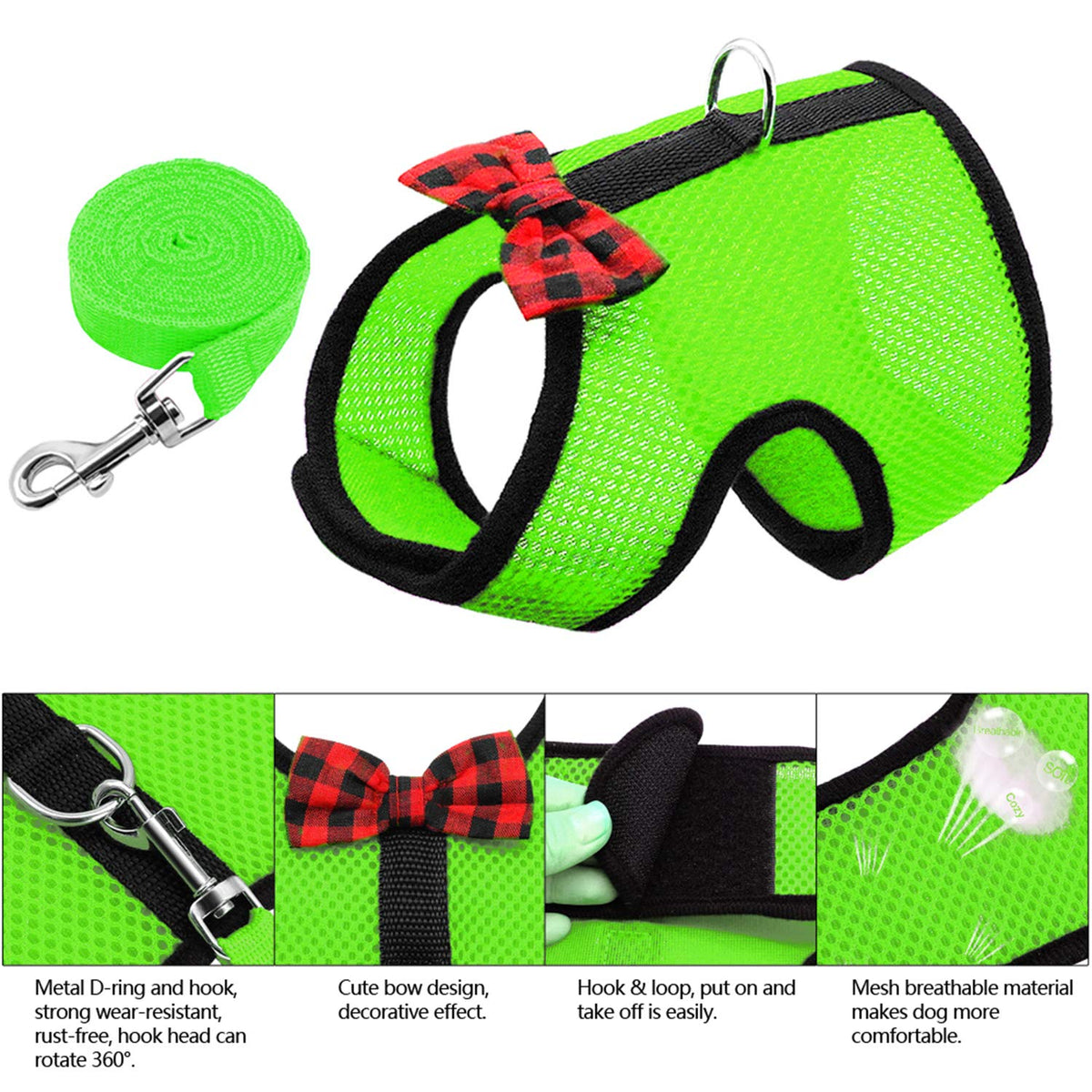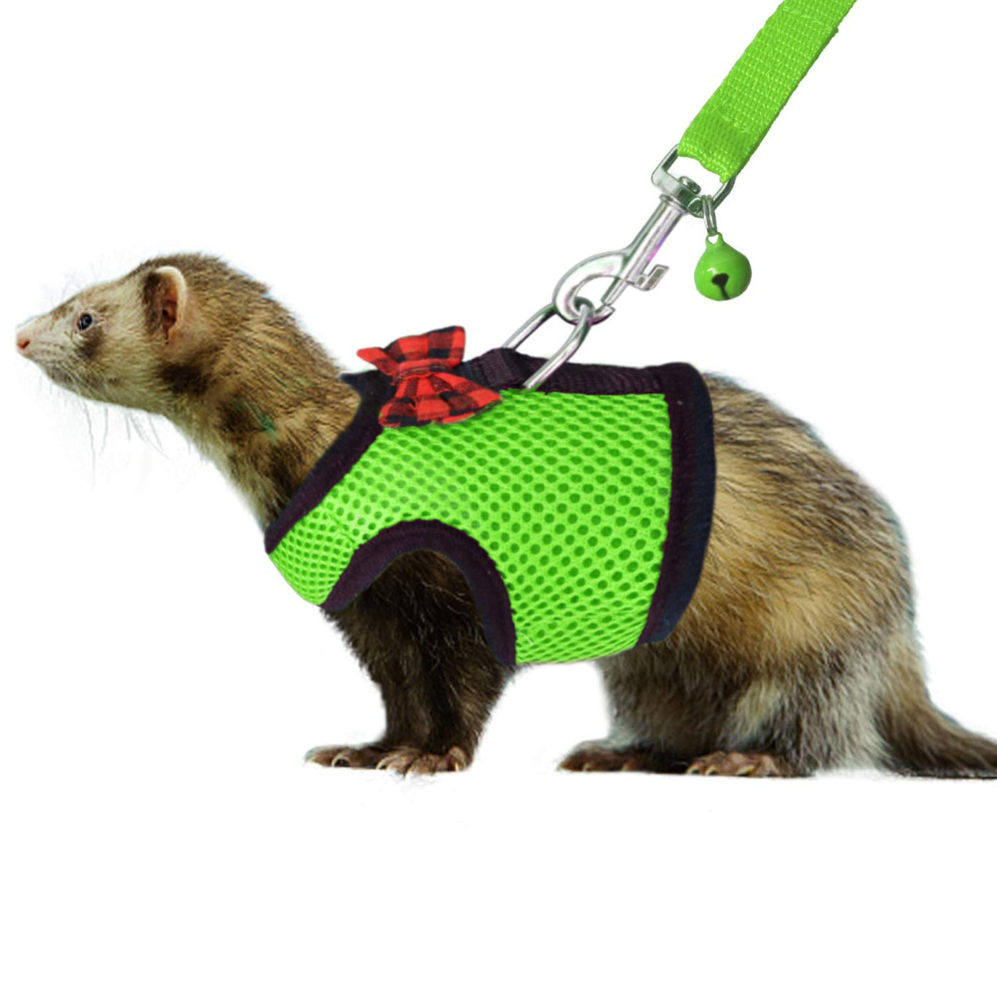 Rypet Small Animal Harness And Leash - Soft Mesh Pet Harness With Safe Bell, No Pull Comfort Padded Vest For Small Pets Green