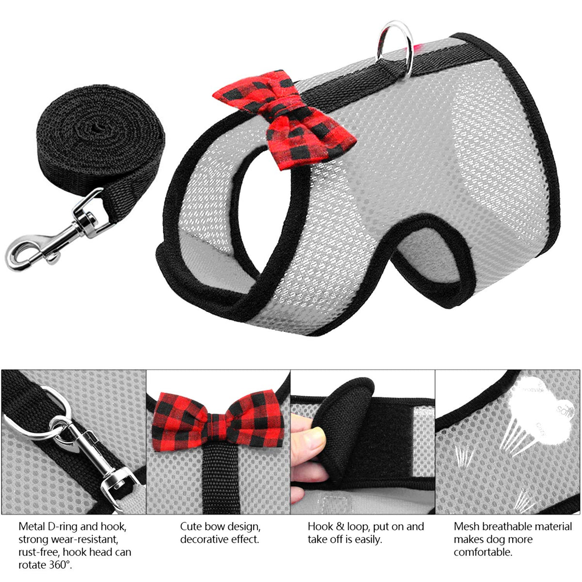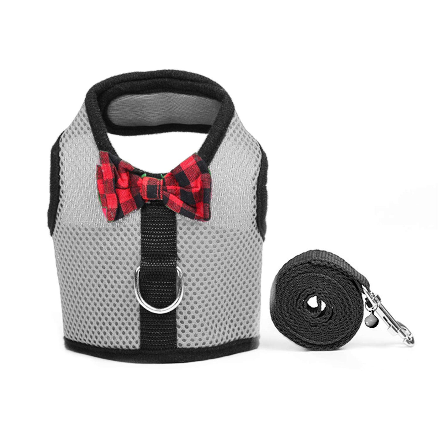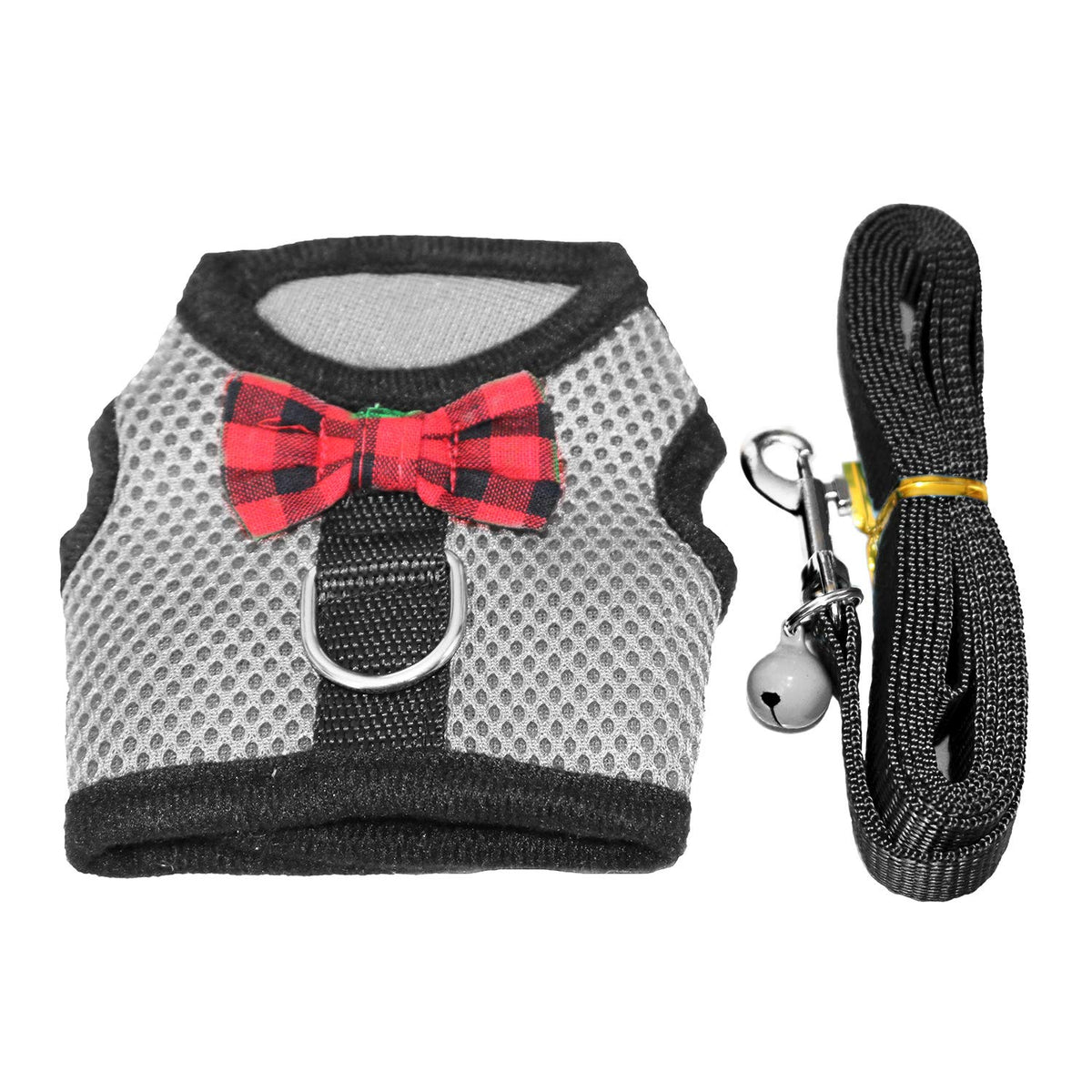 Rypet Small Animal Harness And Leash - Soft Mesh Small Pet Harness With Safe Bell, No Pull Comfort Padded Vest For Small Pet Gra