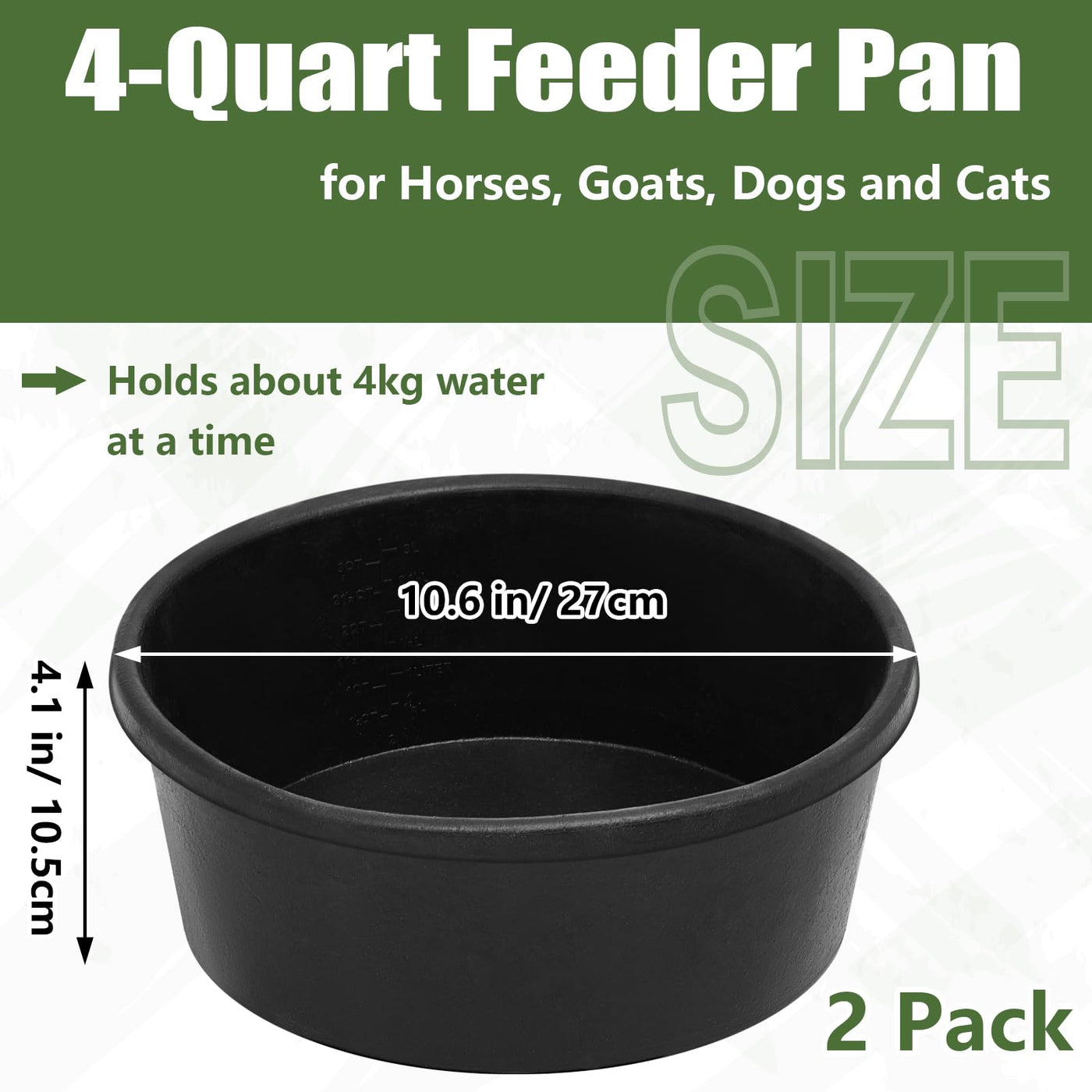 Features: Enjoy a sleek and attractive appearance with this rubber bucket. Its refined design adds a touch of elegance to most feeding area, making them visually appealing. Trust in these horse buckets resilience and dependability, allowing for long lasting use and peace of mind. Specifications: Material: rubber Color: black Size: about 10.6 x 4.1 inches/ 27 x 10.5 cm Capacity: 4 quart Package includes: 4 x Feed pans Notes: Manual measurement, please allow slight errors on size. The color may exist a slight difference due to different screen displays. Before purchase, confirm whether the product size is suitable for your pet. Due to the characteristics of rubber, there will be adhesion between the pans, you can squeeze both sides, while pull it hard until you can see the bottom, and then remove. See the picture for instructions.