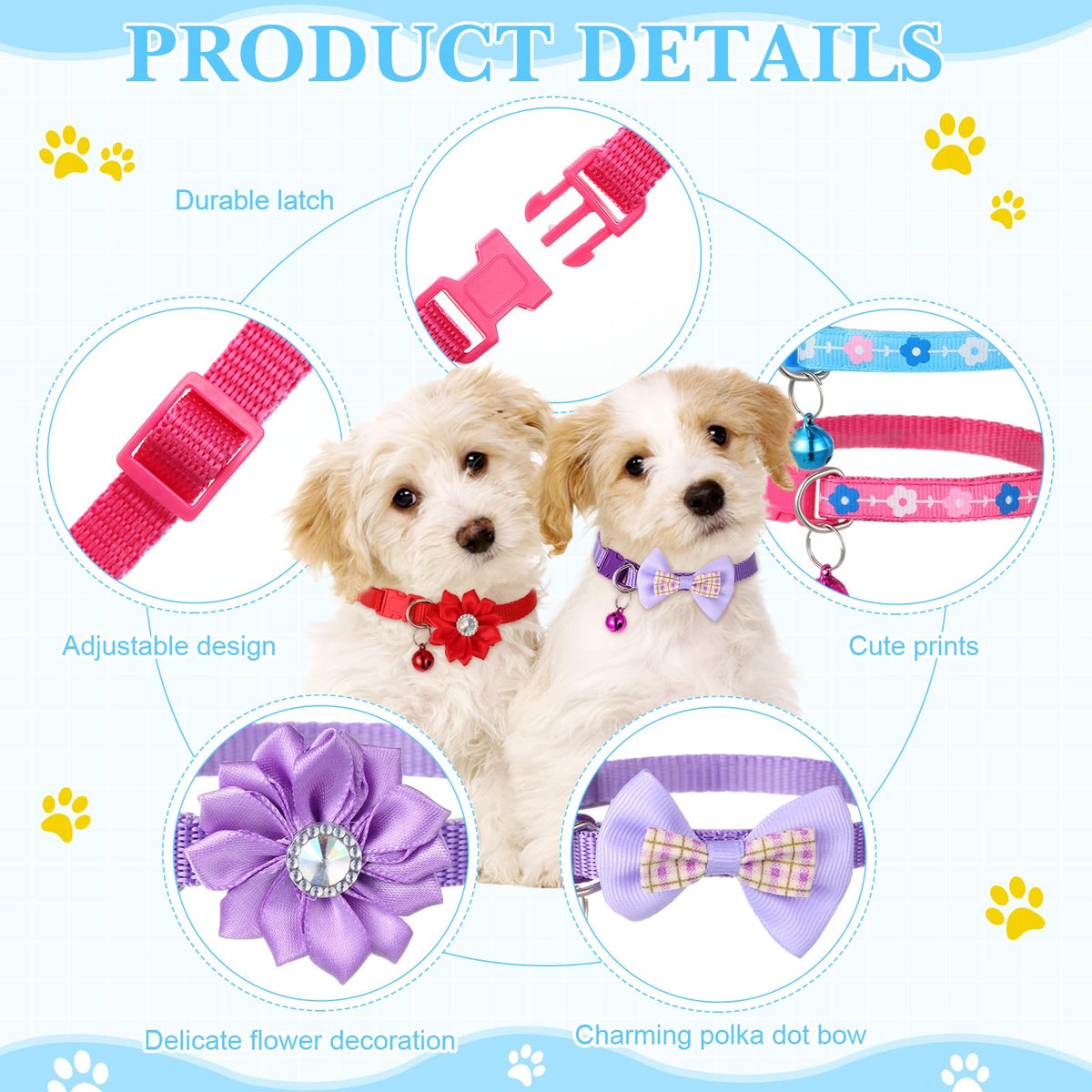 Saintrygo 22 Pack Dog Bow Tie Collar - Adjustable Bowtie, Flower Neck Tie For Medium Small Dog Cat Puppy(Delicate)