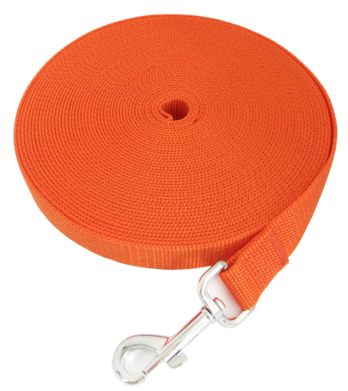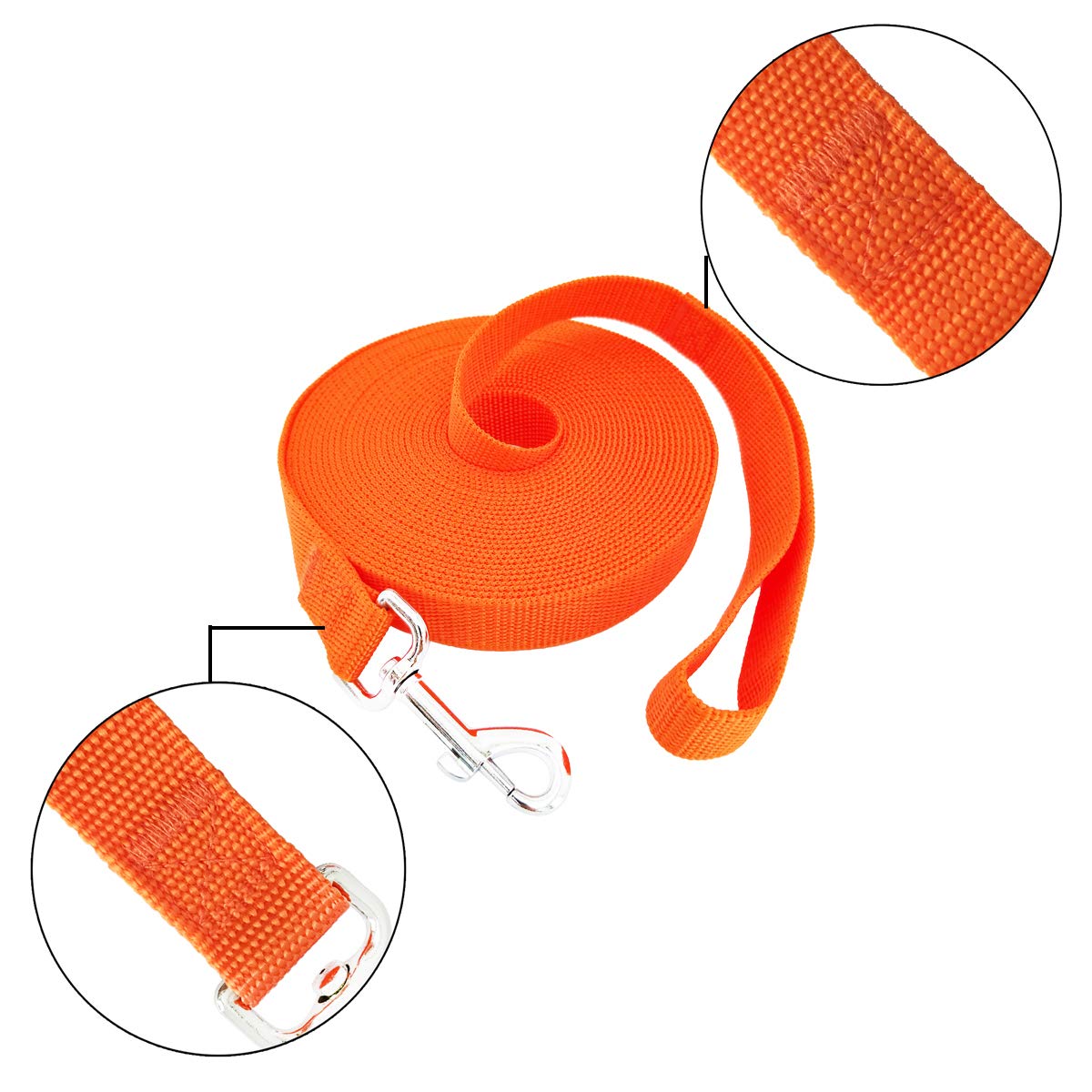 Salo Nylon Training Dog Leash For Small Medium Large Dogs, 1 Inch Wide, 20Ft 30Ft 40Ft 50Ft Long Leash Dog/Puppy Lead For Obedience Recall Training, Camping, Or Backyard (30 Foot, Orange)