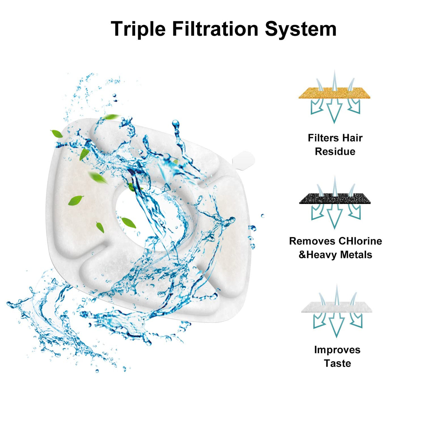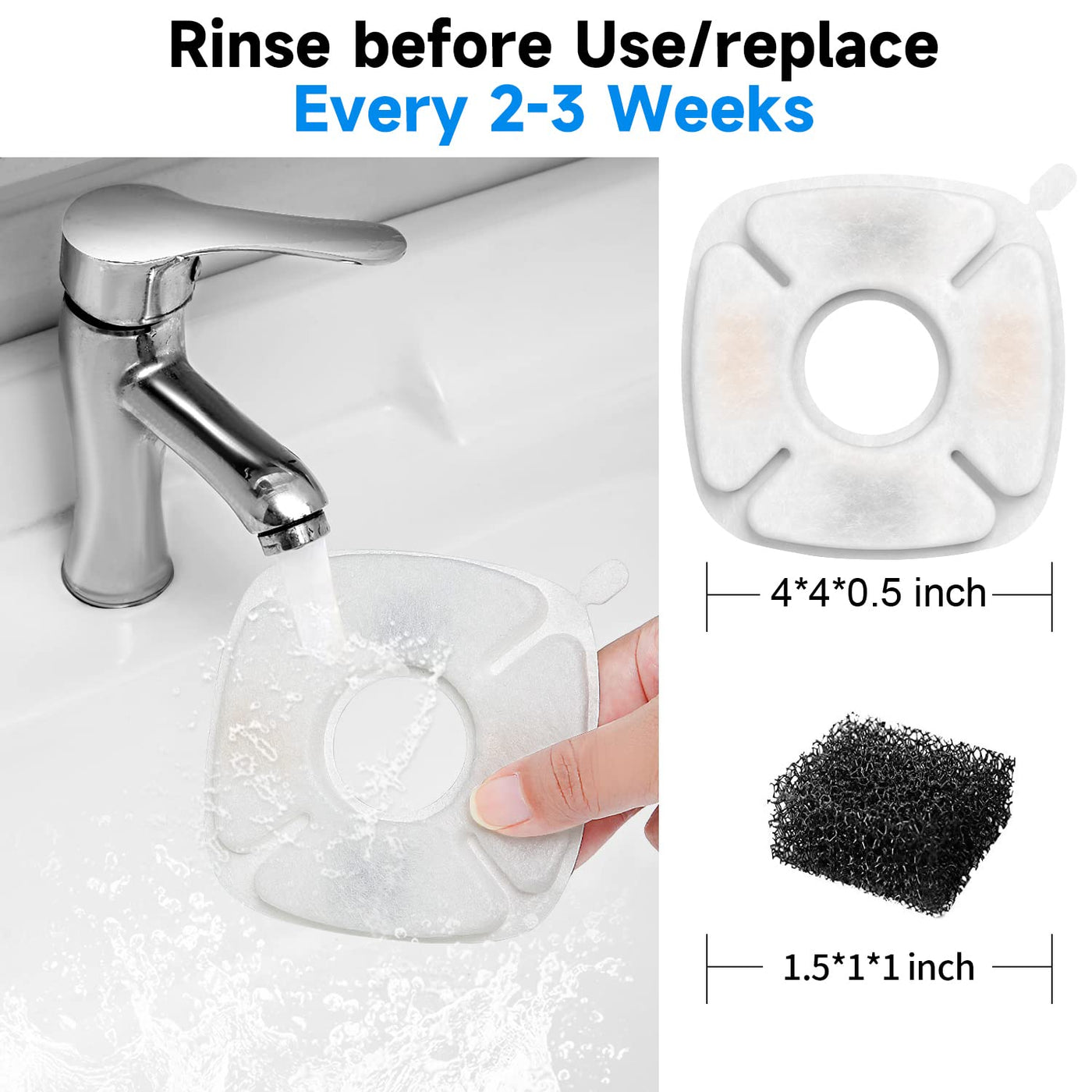 erfect MatchSAMANIJA 10-Pack cat water fountain filters compatible with Veken 95oz28L Pet water Fountains(Not compatible with Veken 84oz25L Pet Fountains) Package includes 10-pack of filters and 10-pack Pre-filter SpongesThese are Samanija branded filters and are not created or sold from Veken Keep Your Pet HealthyEach pet fountain filter is composed of a cotton layer activated carbon and an ion exchange resin They can filter hair heavy metals and improve the taste of the water so that pets can drink clean and fresh water all day which helps to increase water consumption and reduce the risk of urinary tract infections RecommendationsTo prevent the activated carbon dust from shedding into water please soak the filter in water for 3 minutes and rinse it thoroughly under running water before use According to your pets drinking frequency and the number of pets using the fountain change a cat water fountain filter after using 2 to 4 weeks to keep water running fresh and clean certificationAll materials of the filters are certified by SgS by cE&RoHS improve the taste of the water to Keep your Pet healthy Improve water qualityTriple Action Fountain Filters help remove the excess magnesium and calcium from your catAs drinking waterfilters help achieve optimal purification of your felineAs drinking water Let your pet love to drink water