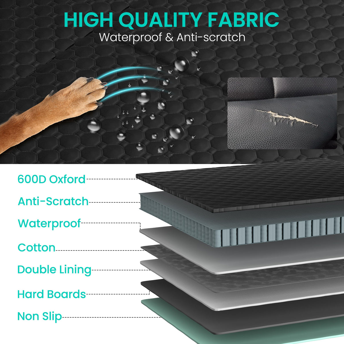 Sangoodier Dog Car Seat Cover For Back Seat, Hard Bottom Back Seat Extender For Dogs, Waterproof Dog Hammock For Truck Support T