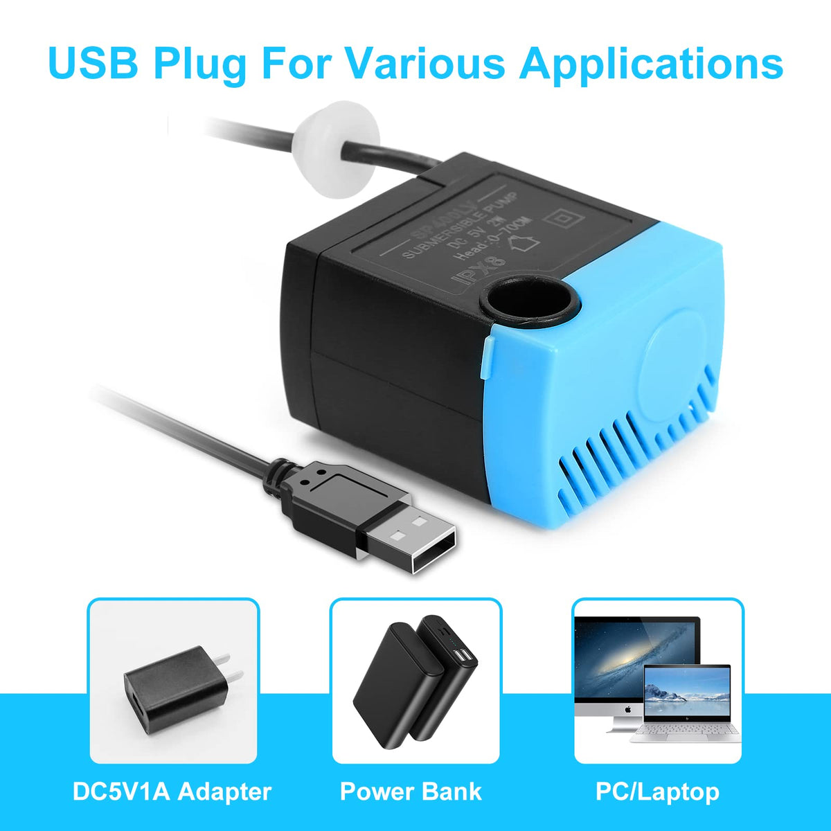?Long Life?DC 5V low voltage and IPX8 waterproof provide strong vitality for the water pump For proper safety only use 5V/1A USB power adapters. (USB adapter is not included in the package).