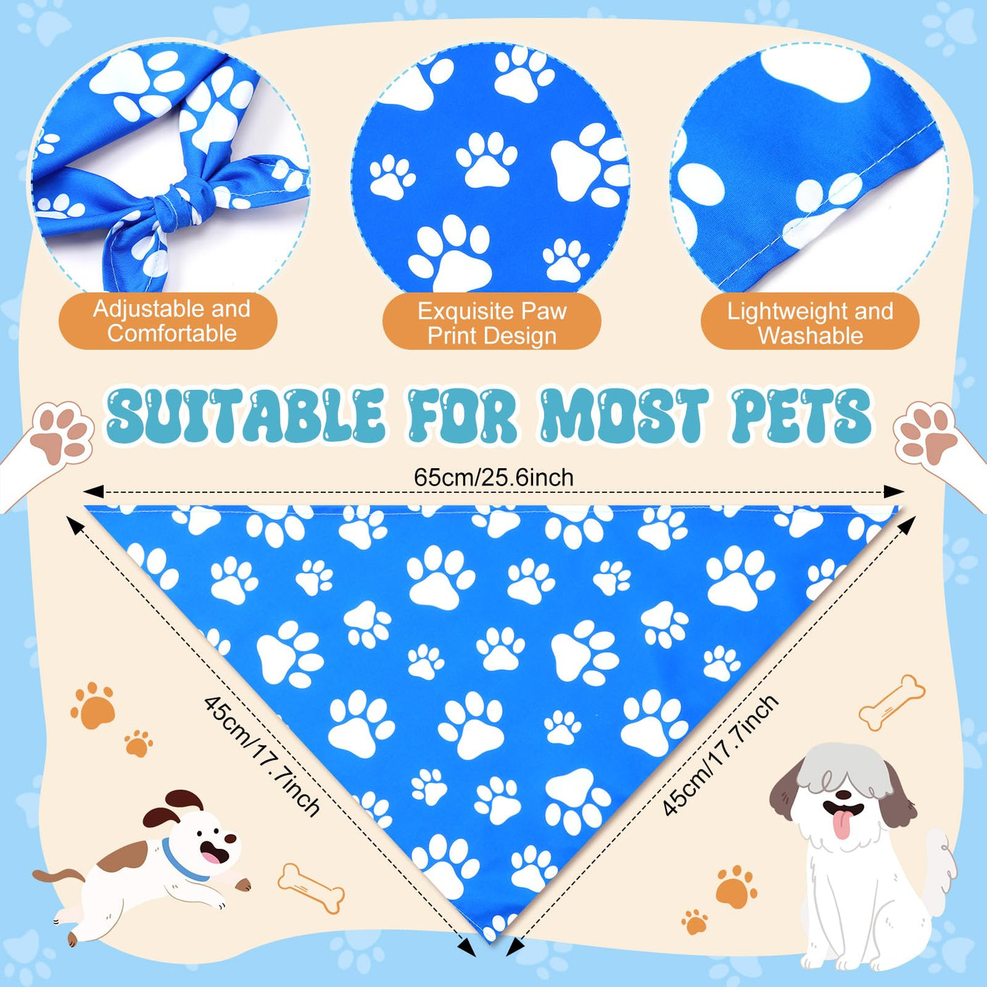Features: Different ways to use: Dog paw print dog bandanas bulk can also be applied as bandages, ties, scarves, headbands, etc., also suitable for young people as ankle bandages, ties, scarves, headbands and so on. Good Choice for Dog Groomers: These triangle dog bandanas featuring cute paw print patterns in different colors, are an ideal option for pet groomers. Theyre affordable, nice quality, and save time, allowing you to pleasantly surprise pet owners with minimal effort. Specifications: Material: polyester Size: approx. 25.6 x 17.7 x 17.7 inches/ 65 x 45 x 45 cm Color: as pictures shown Package includes: 50 x Dog paw print dog bandanas Notes: Manual measurement, please allow slight errors on size. The color may exist a slight difference due to different screen displays. Please measure the size of your pet before ordering.