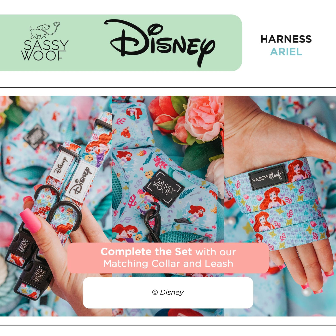 Sassy Woof Dog Adjustable Harness - Disney Princess Little Mermaid Ariel - Xl, Breathable Mesh, No Pull Design With Two D-Rings,
