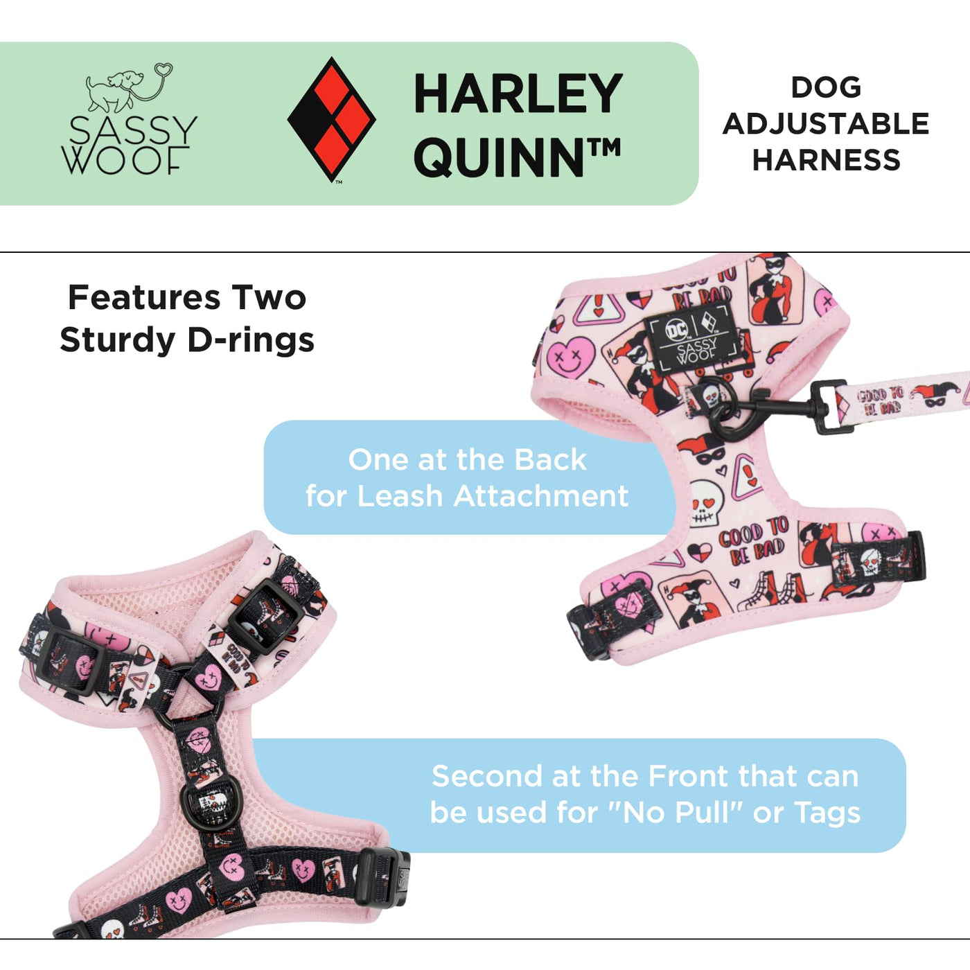 Sassy Woof Dog Adjustable Harness - Harley Quinn - M, Breathable Mesh, No Pull Design With Two D-Rings, Patented Design, Perfect
