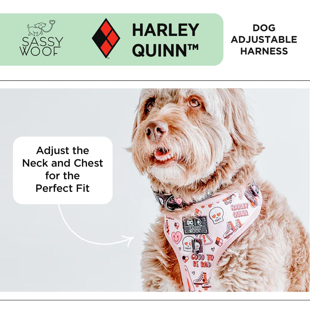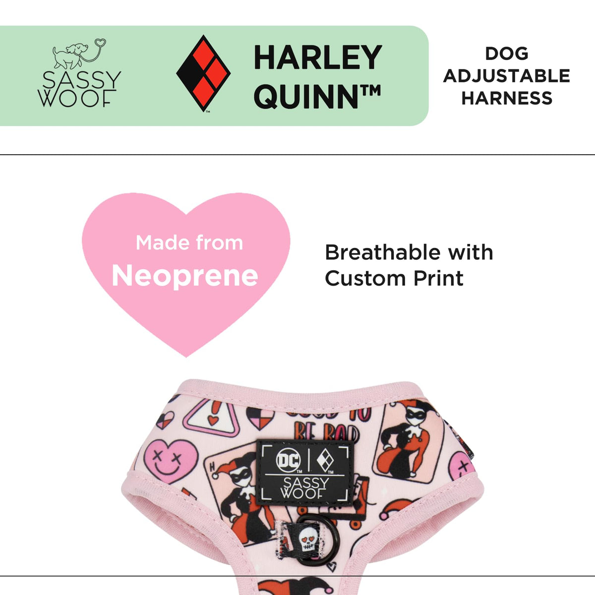 Sassy Woof Dog Adjustable Harness - Harley Quinn - Xs, Breathable Mesh, No Pull Design With Two D-Rings, Patented Design, Perfec