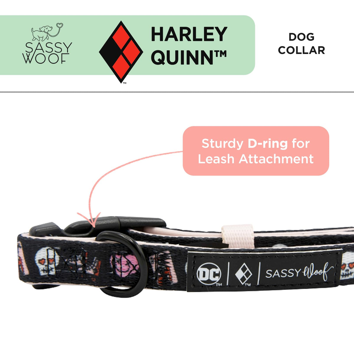 Sassy Woof Dog Collar Harley Quinn - S, Adjustable, Durable, Comfortable And Stylish Pet Accessories For Small Dogs - Officially