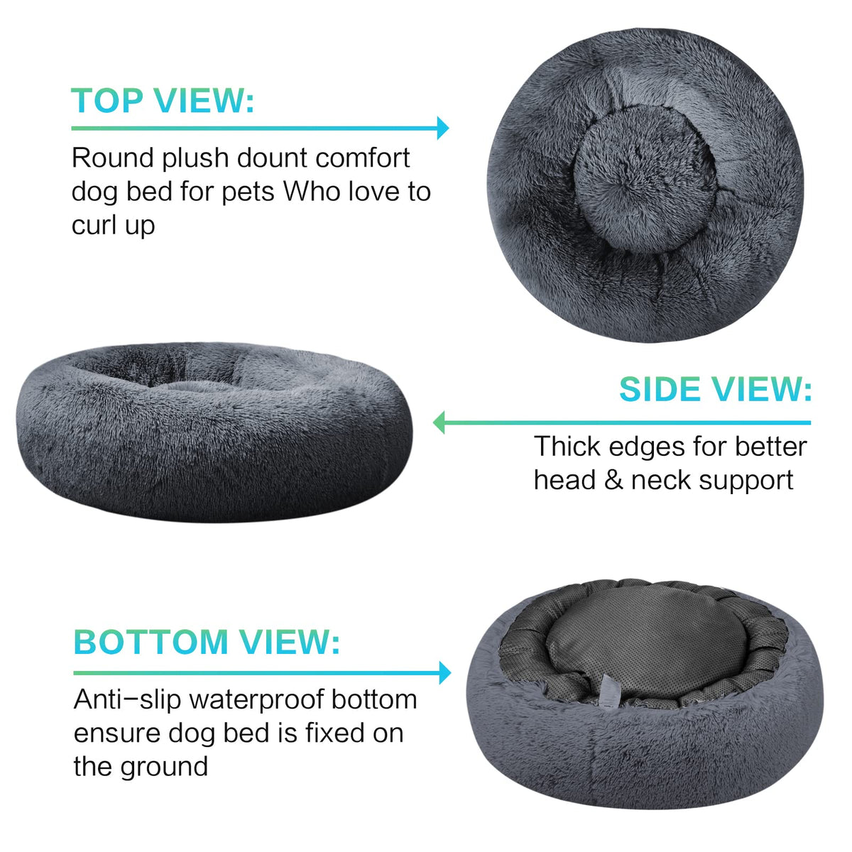 Savfox Plush Calming Donut Dog Beds For Small Dogs, Medium, Large & X-Large Breeds, Comfy Cuddler Dog Bed And Cat Bed In Faux Fu