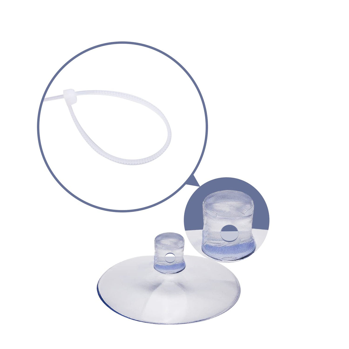 ?Specification?These Suction cups measure 1 inch in diameter can withstand up to 6.6 pounds of pulling force. Hooks are 1.2 inches in length and 0.6 inches in width. Adjustable zip ties are 3.9 inch long. Please note the item size before purchase.