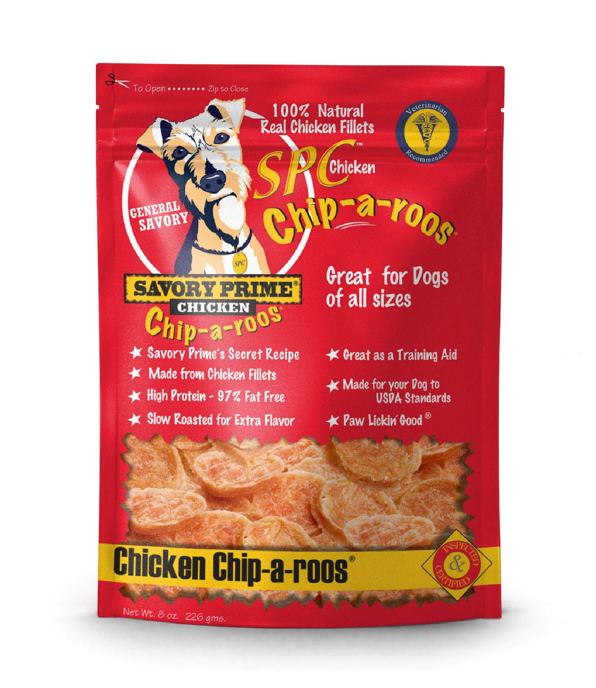 Savory Prime Chicken Chip-A-Roo'S 8 Oz.: Savory Prime Now Introduces Savory Prime Chicken Jerky. These Are 100% Natural Chicken Breasts Dried To Produce An Excellent Pet Snack Or Training Treat. Savory Prime'S Chicken Jerky Is Whole Pieces Of Chicken Breast Naturally Dried To Produce An Excellent Chewing Treat Which Also Provides Your Pet With ''Snack'' Satisfaction.
