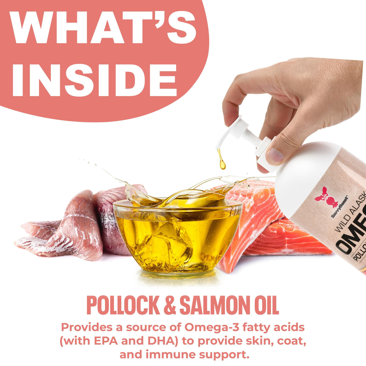 Give your pet the nourishing benefits of omega-3s with SavvyBeast Salmon & Pollock Oil for Dogs & Cats. This all-natural, wild-caught blend combines two powerful fish sources-salmon and pollock-to deliver a rich supply of EPA and DHA, supporting skin hydration, coat condition, joint function, and overall wellness. Its suitable for daily use and gentle enough for pets with sensitivities. With an easy-to-use pump bottle, adding this nutritious oil to your pets meals is simple, mess-free, and convenient. This 32 oz supplement is an easy way to support your dog or cats routine with consistent omega-3 nutrition.