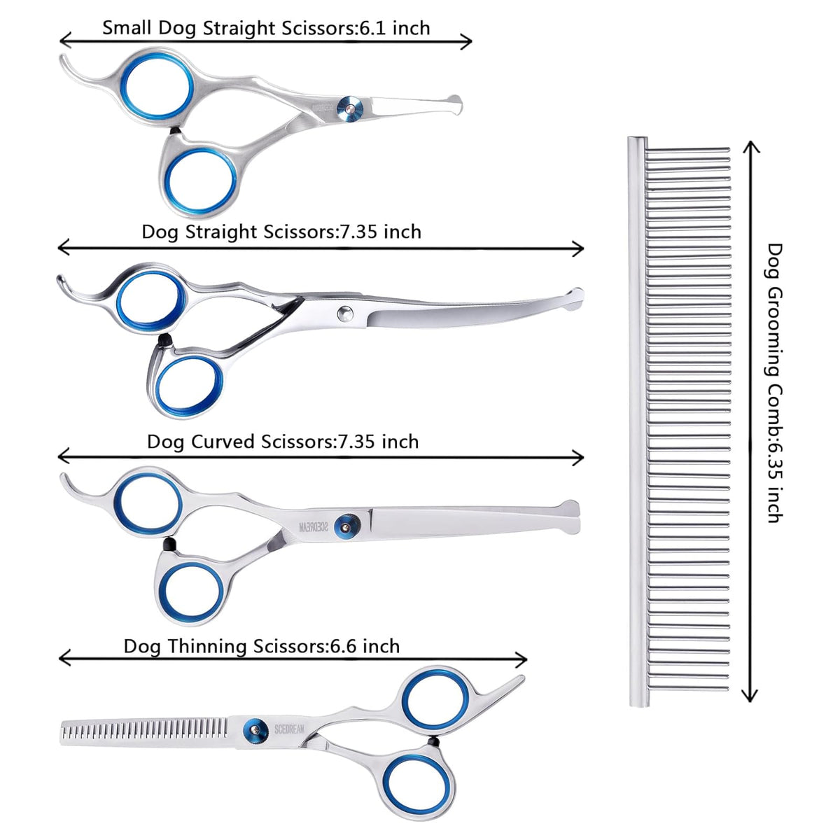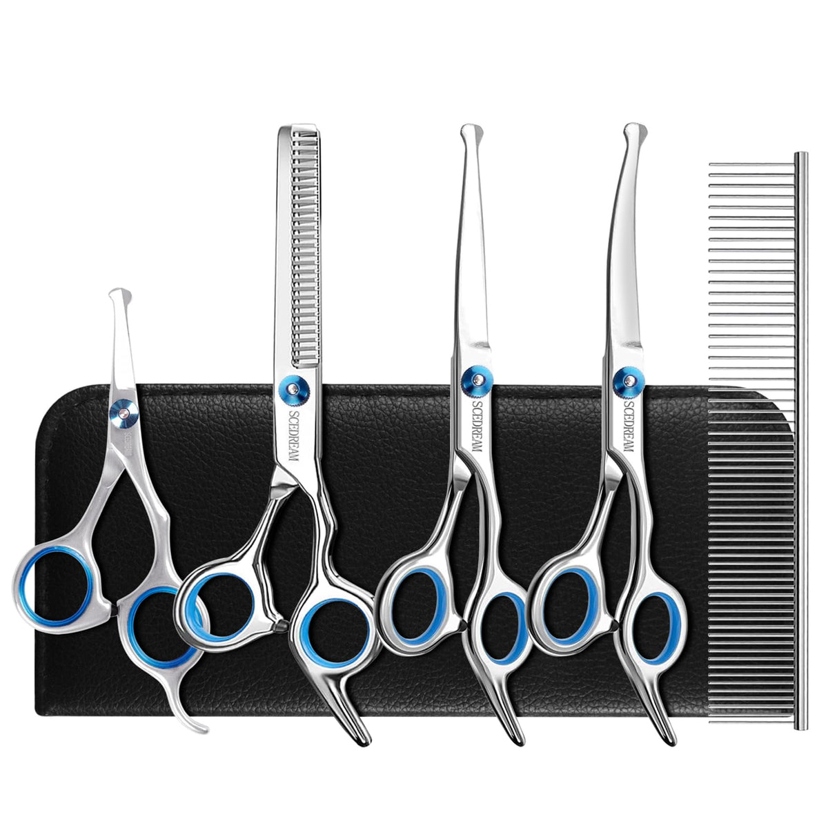 Scedream Dog Scissors - 6 In 1 Pet Grooming Set, Curved Tips, Blue