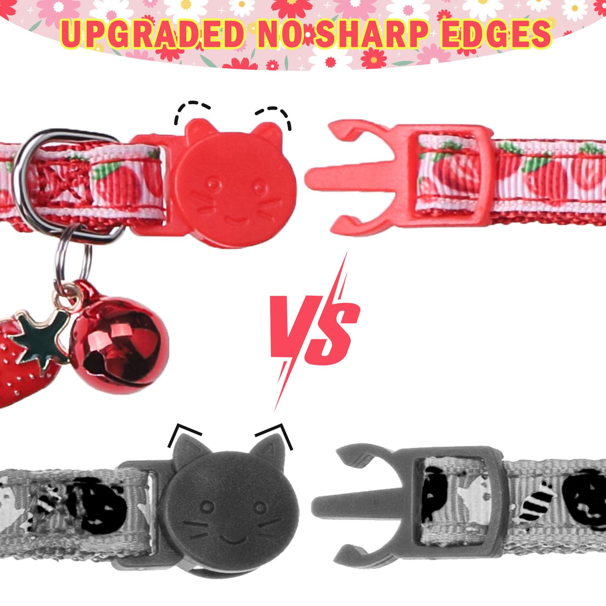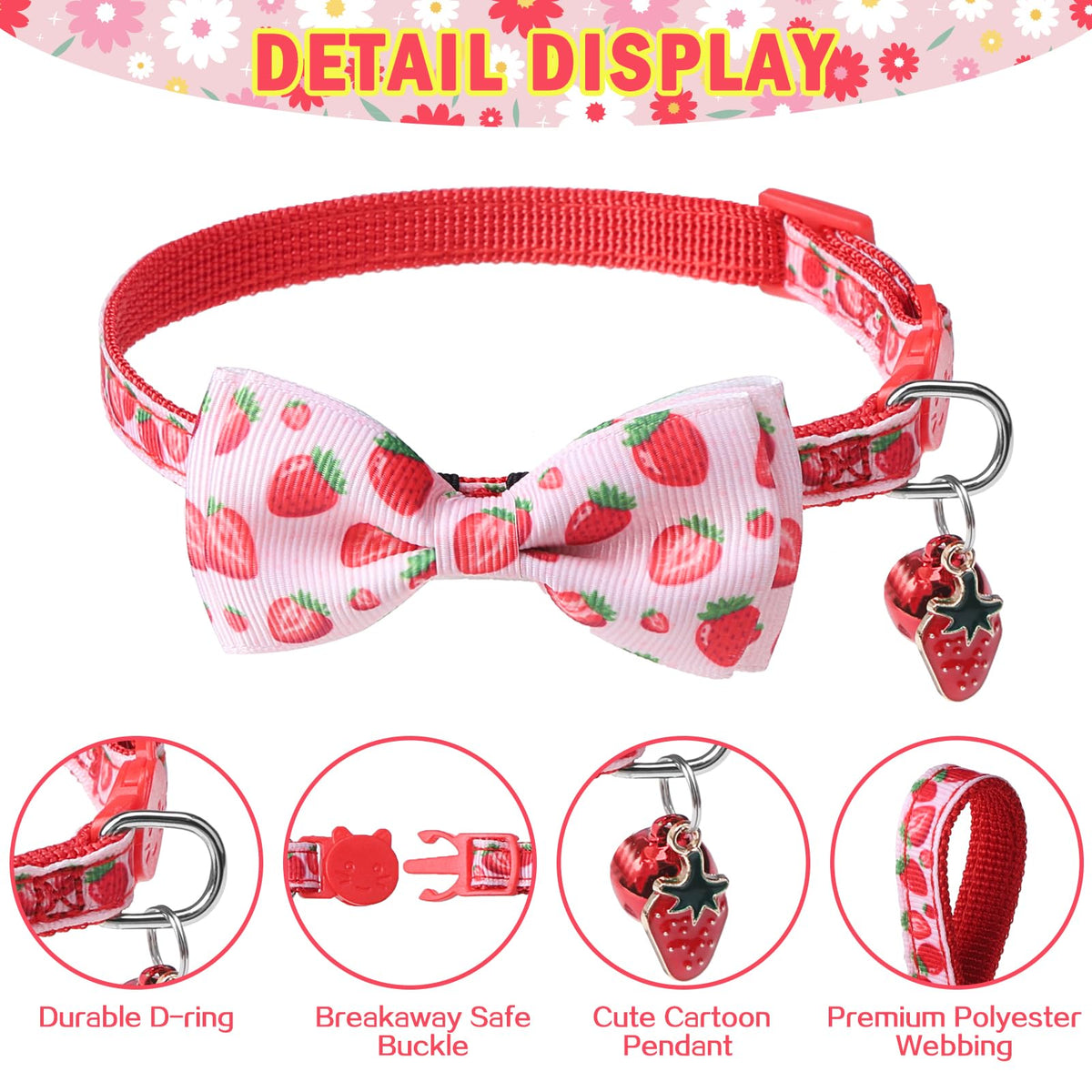 Scenereal Breakaway Cat Collar With Bell, 2 Pack Safety Adjustable Cat Collars With Pendant, Pink Personalised Puppy Kitten Coll