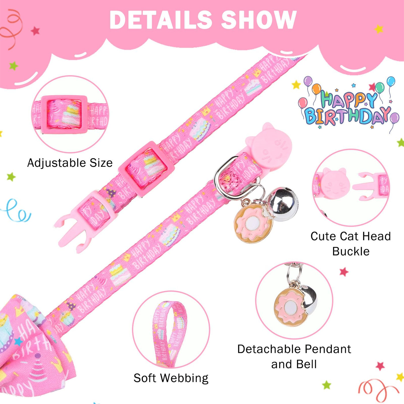 Scenereal Cat Bandana Collar For Birthday - 2 Pack Breakaway Kitten Collars With Bell Bowtie, Accessories For Pets, Adjustable C