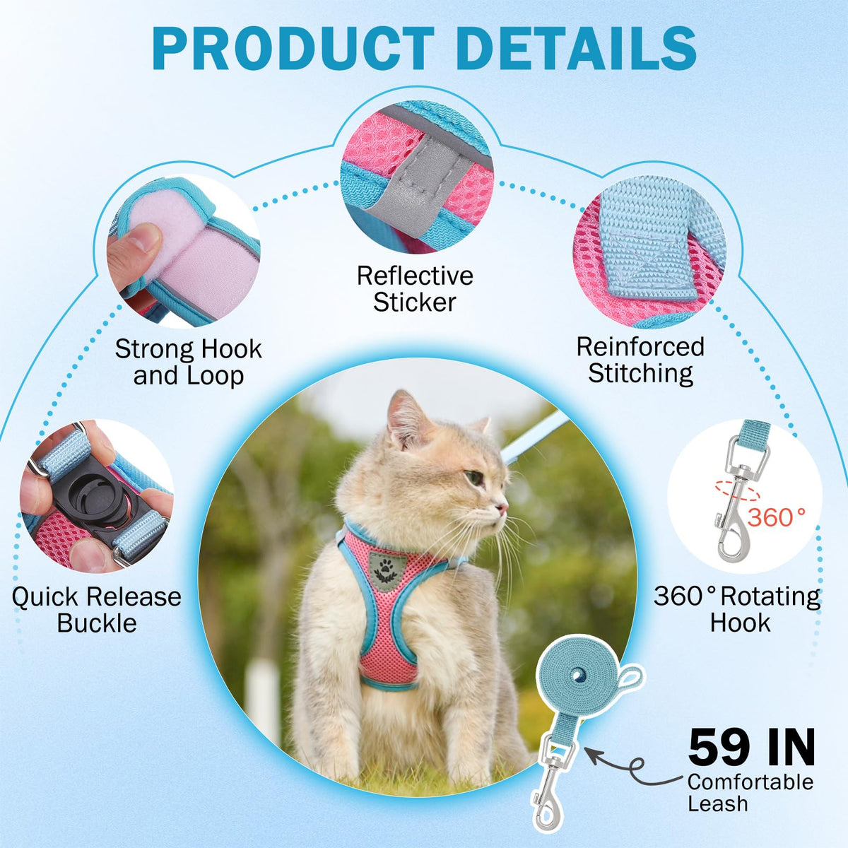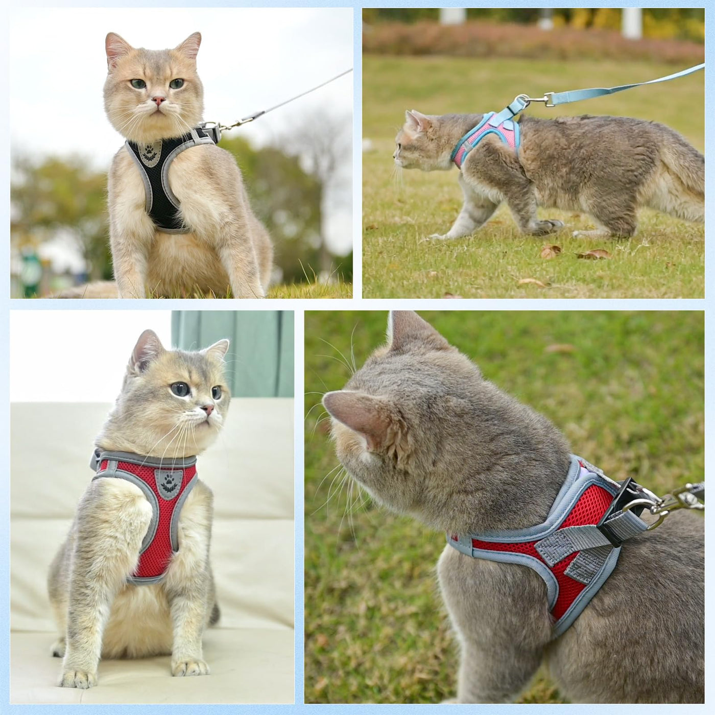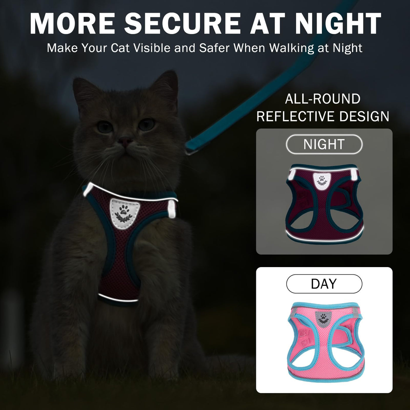 Scenereal Cat Harness And Leash Set Escape Proof, Adjustable Soft Air Mesh Kitten Harnesses For Girls Boys Small Medium Big Cats